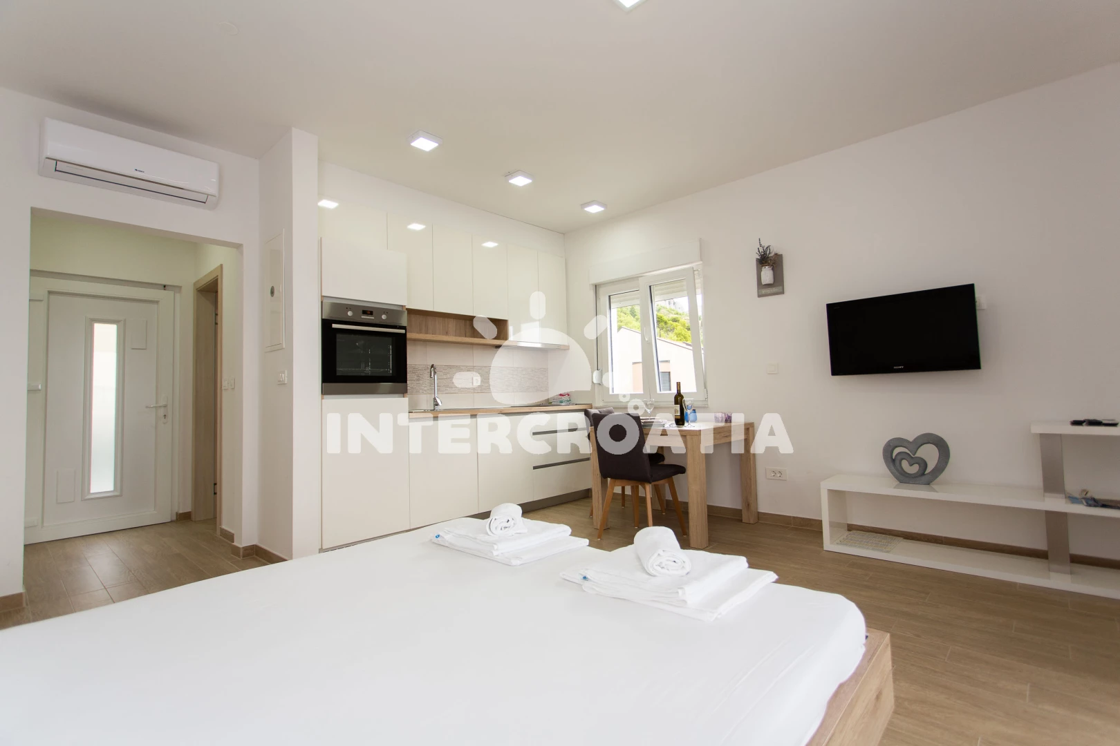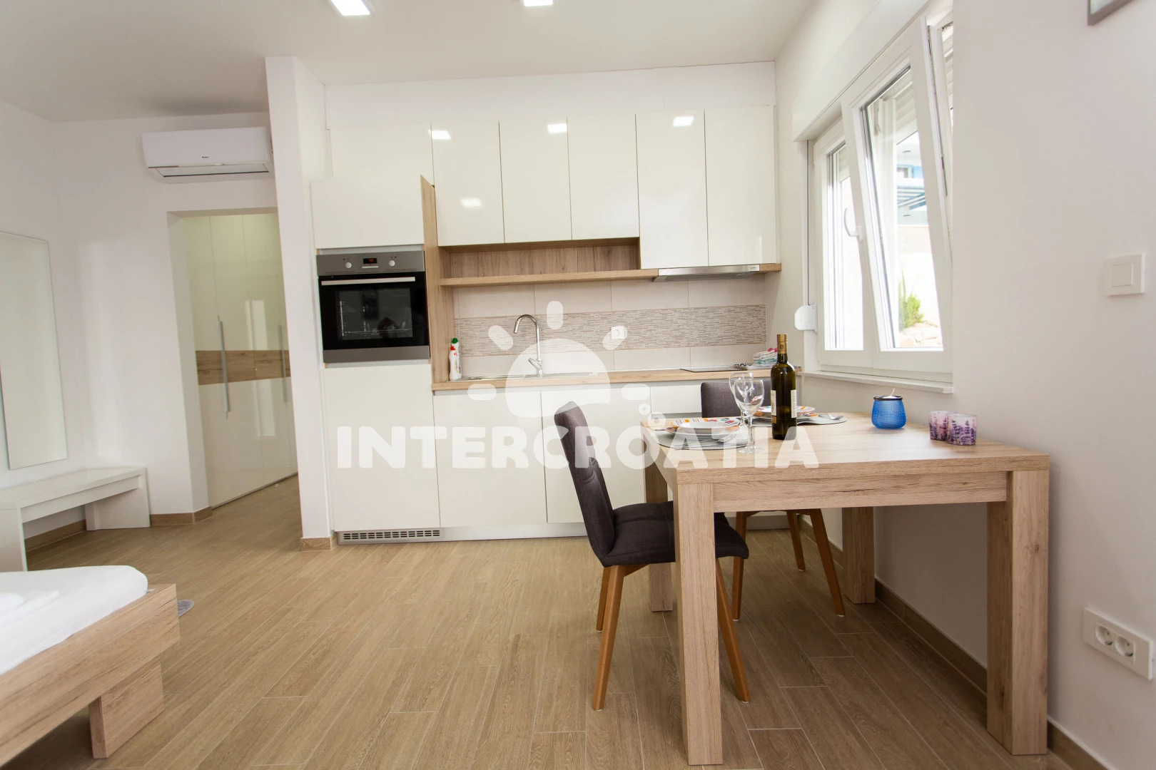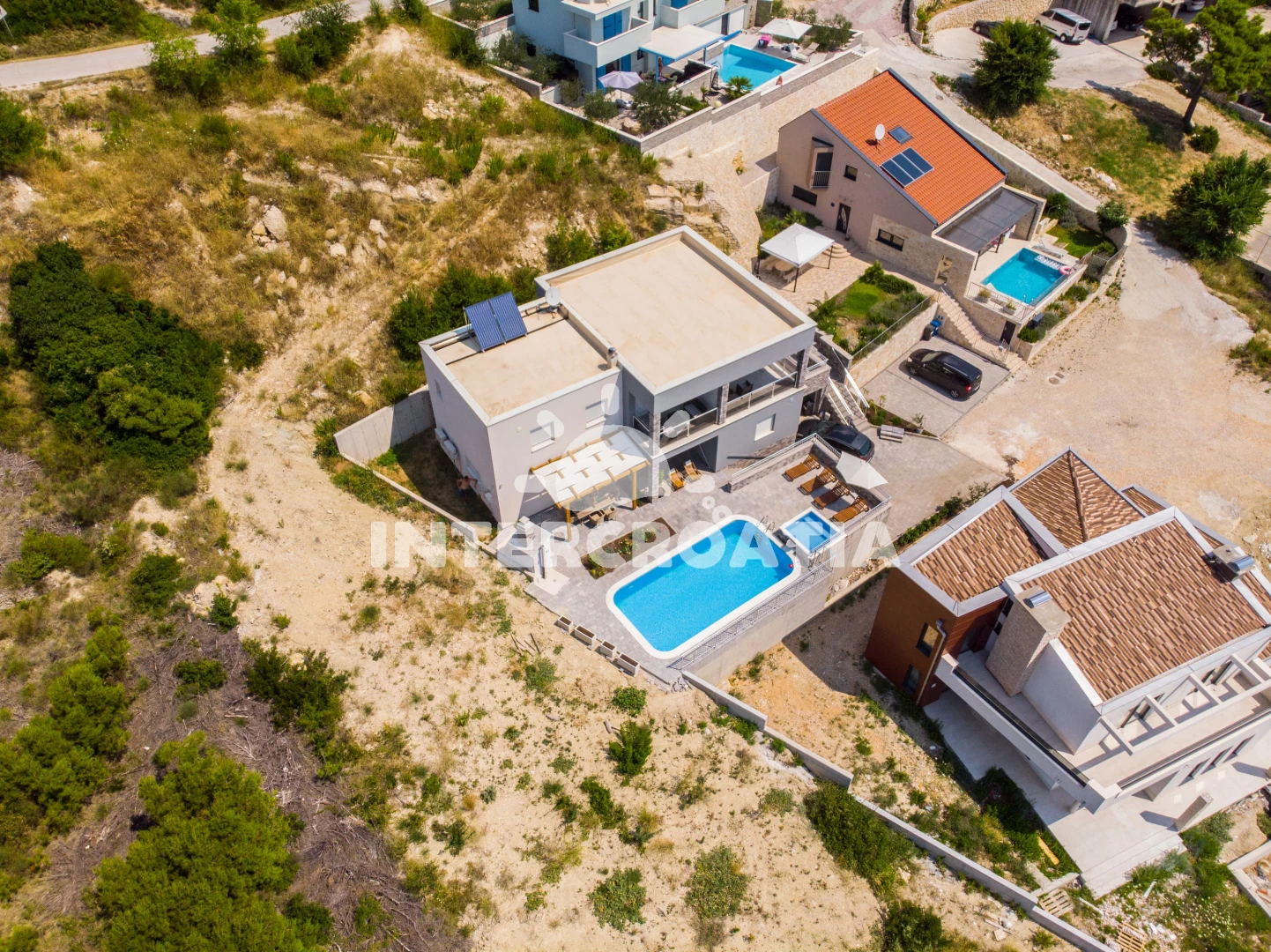 Vzdálenosti: Moře 250 m, pláž 200 m (písek), restaurace 350 m, bar 350 m, centrum 500 m, veřejná doprava 800 m, tenisové kurty 800 m, směnárna 900 m, půjčovna kol 900 m, supermarket 900 m, lékárna 1 km, čerpací stanice 1 km, půjčovna motorových člunů 1 km, banka 1,2 km, pošta 1,5 km, potápění 1,5 km, muzeum 1,5 km, ambulance 2 km, mini golf 7 km, diskotéka 20 km, trajekt (Split) 25 km, letiště (Split) 45 km,