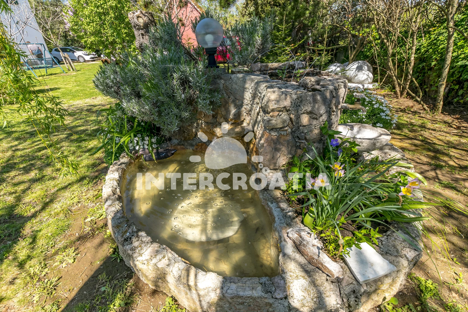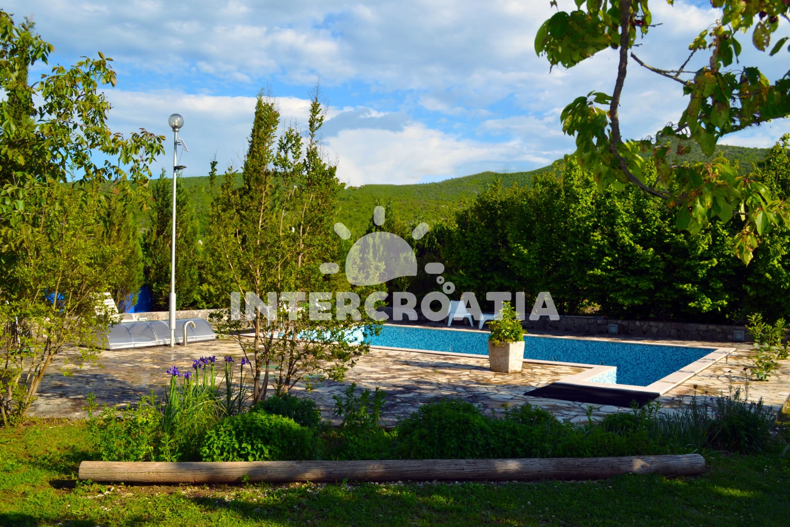 Vila se nachází 27000 m od moře a pláže. Pláž je oblázková a betonové desky. Vila disponuje bazénem s lehátky pro ubytované hosty. U objektu je k dispozici společná zahrada s posezením a grilem. Parkování je před domem.