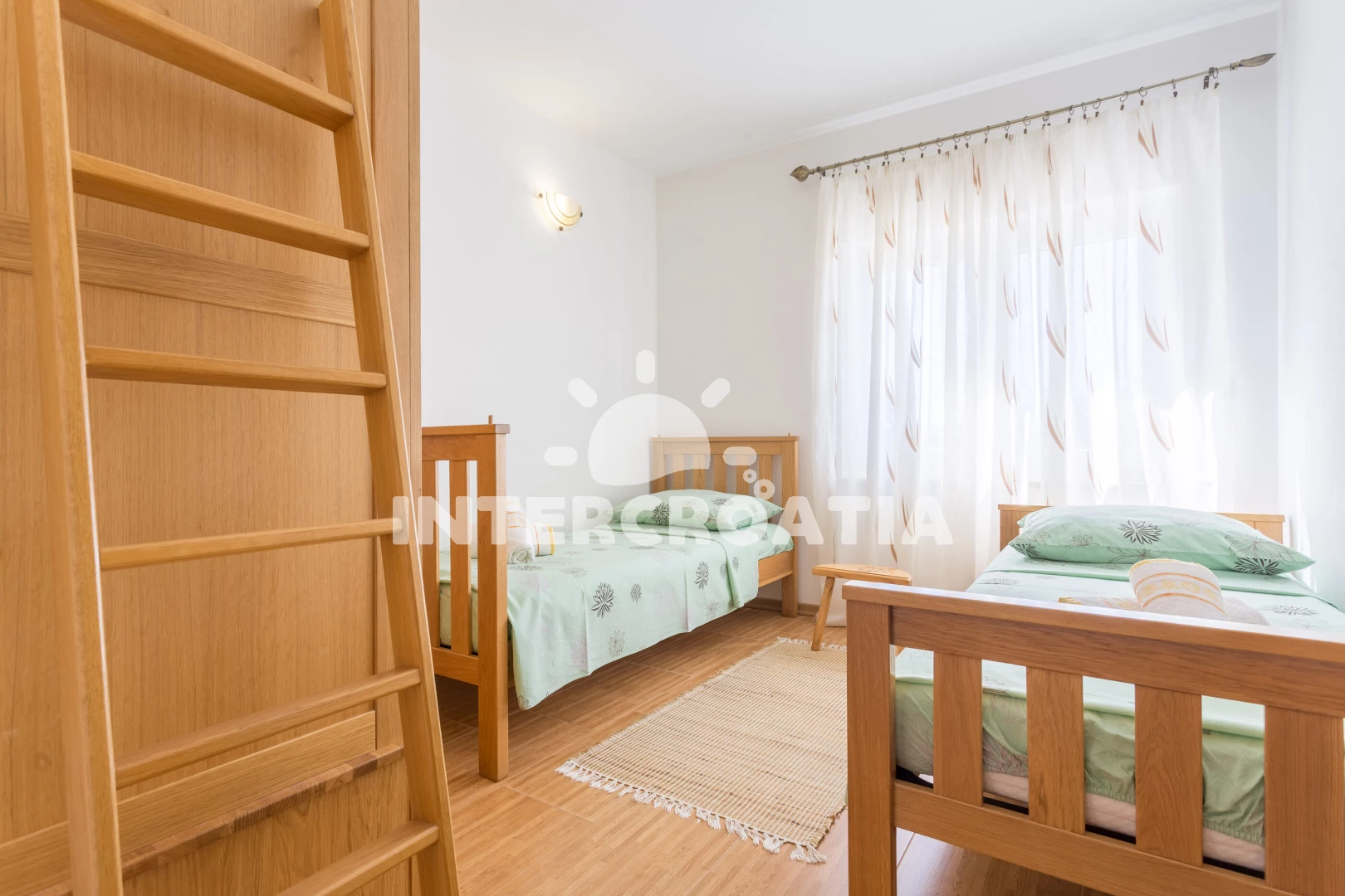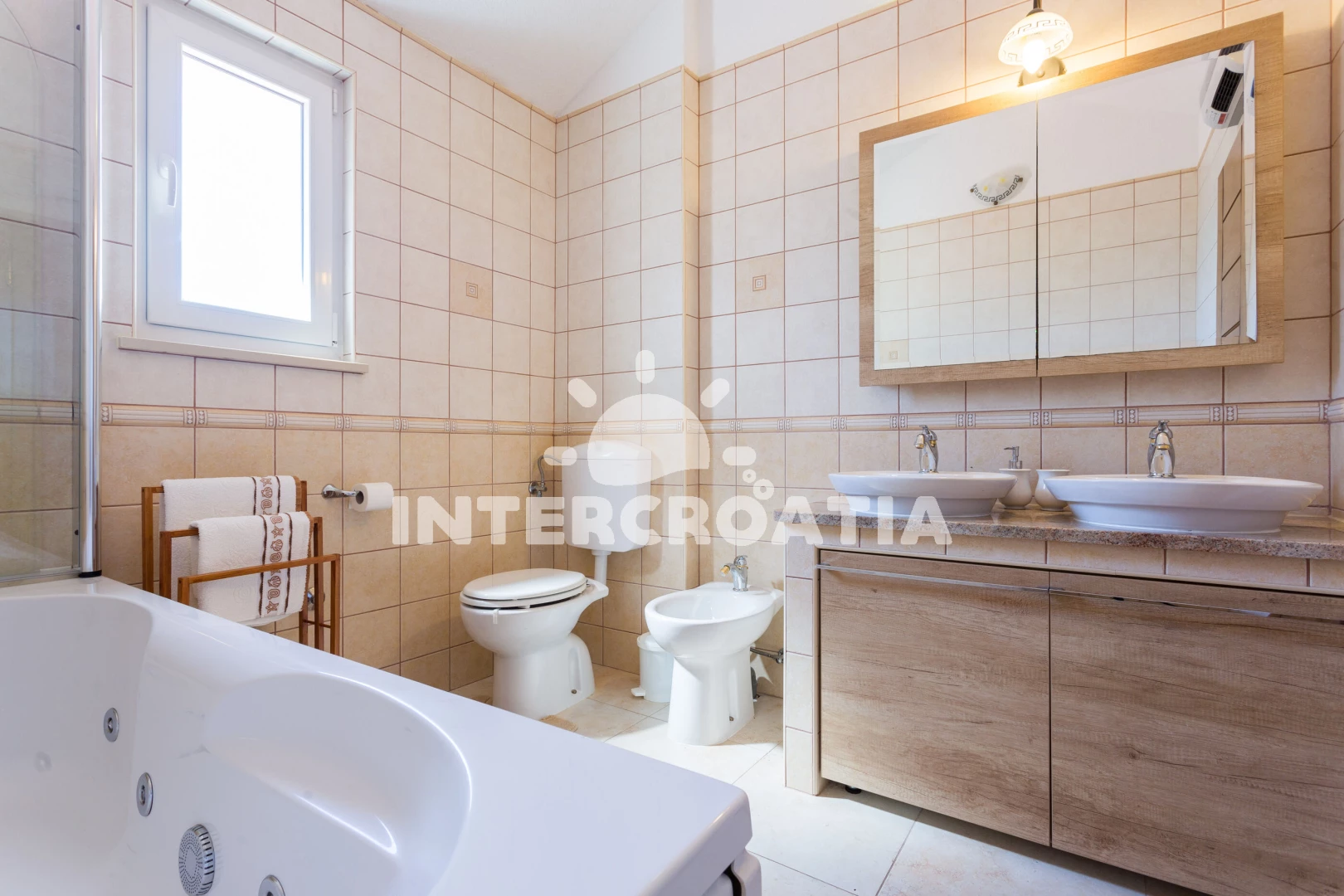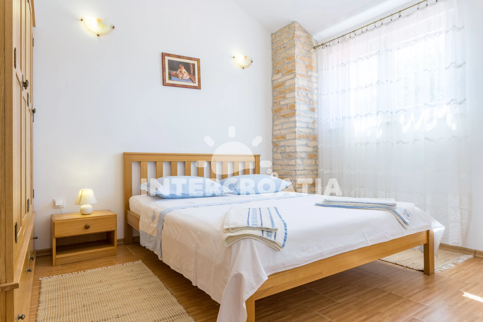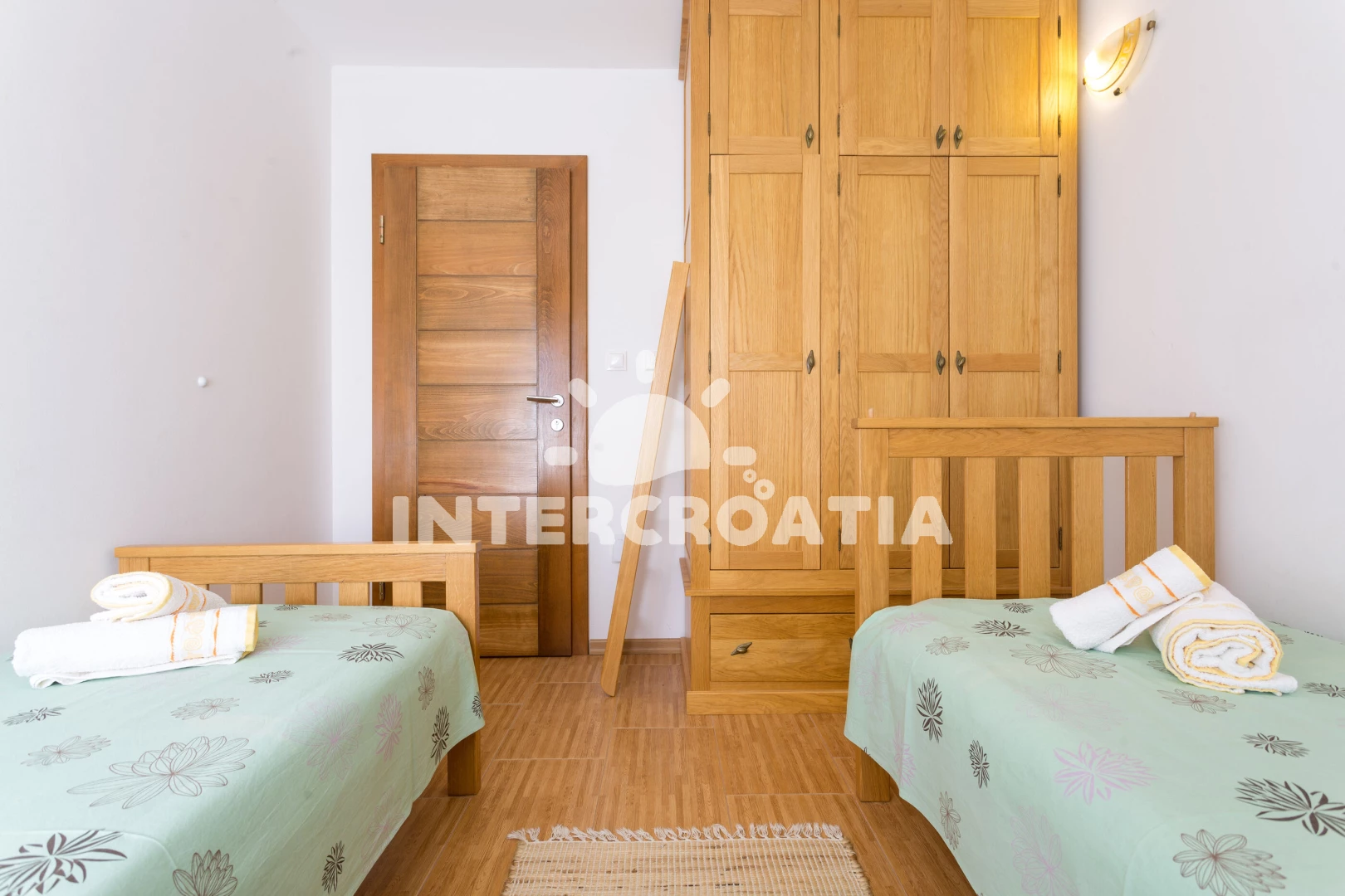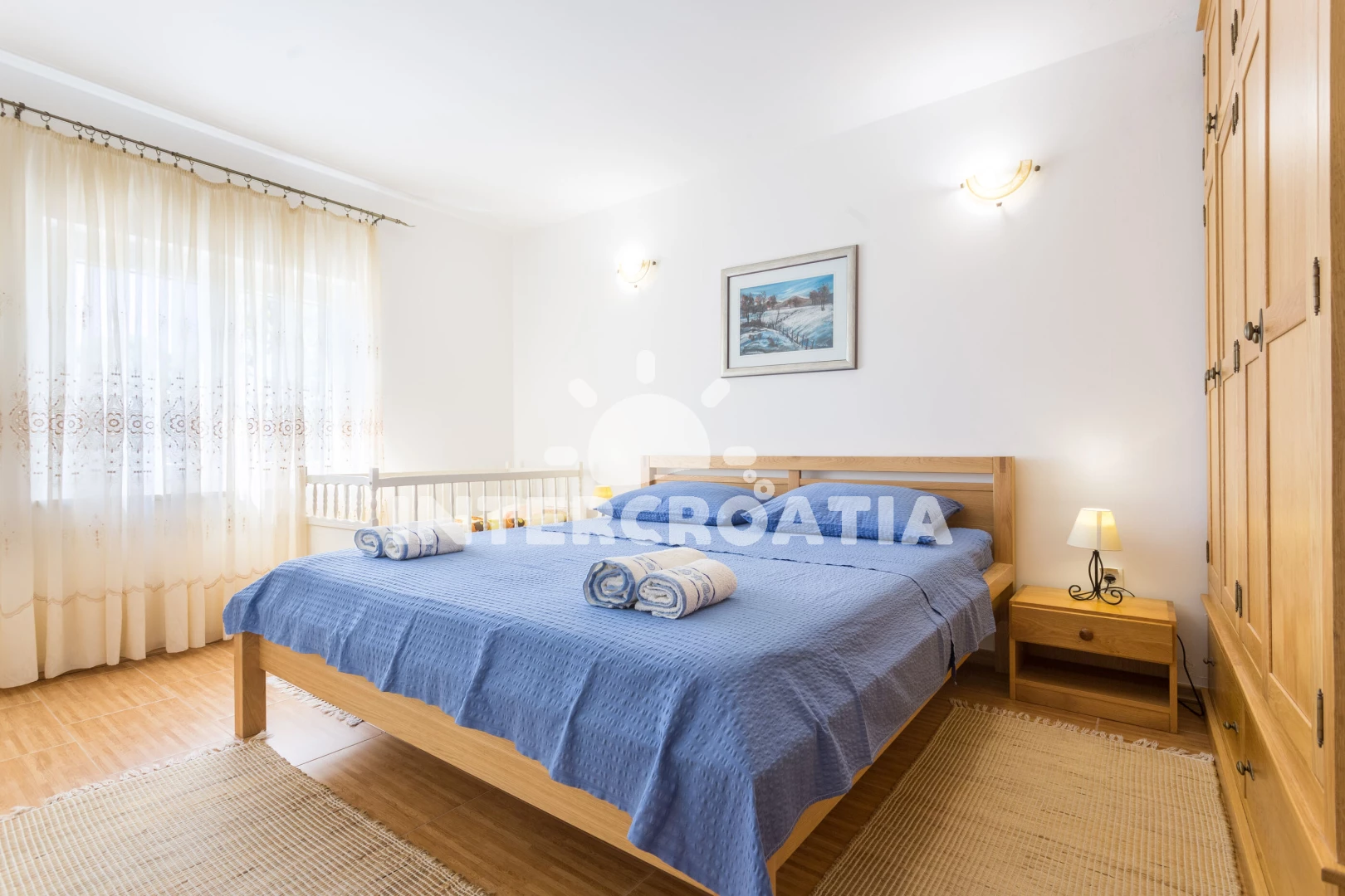 Vila (170 m2) s balkonem. Vila má 5 ložnic a je vhodná pro až 10 osob. Kuchyňská linka je vybavena varnou deskou, troubou, kávovarem, toustovačem, myčkou na nádobí, mikrovlnnou troubou, rychlovarnou konvicí, nádobím, lednicí, mrazákem. K dispozici televize, žehlička. První ložnice s dvoulůžkem. Druhá ložnice s dvoulůžkem. Třetí ložnice se 2 jednolůžky. Čtvrtá ložnice s dvoulůžkem. Pátá ložnice s dvoulůžkem. Koupelna se sprchovým koutem, umyvadlem, fénem a WC. Dále 2 samostatné WC.