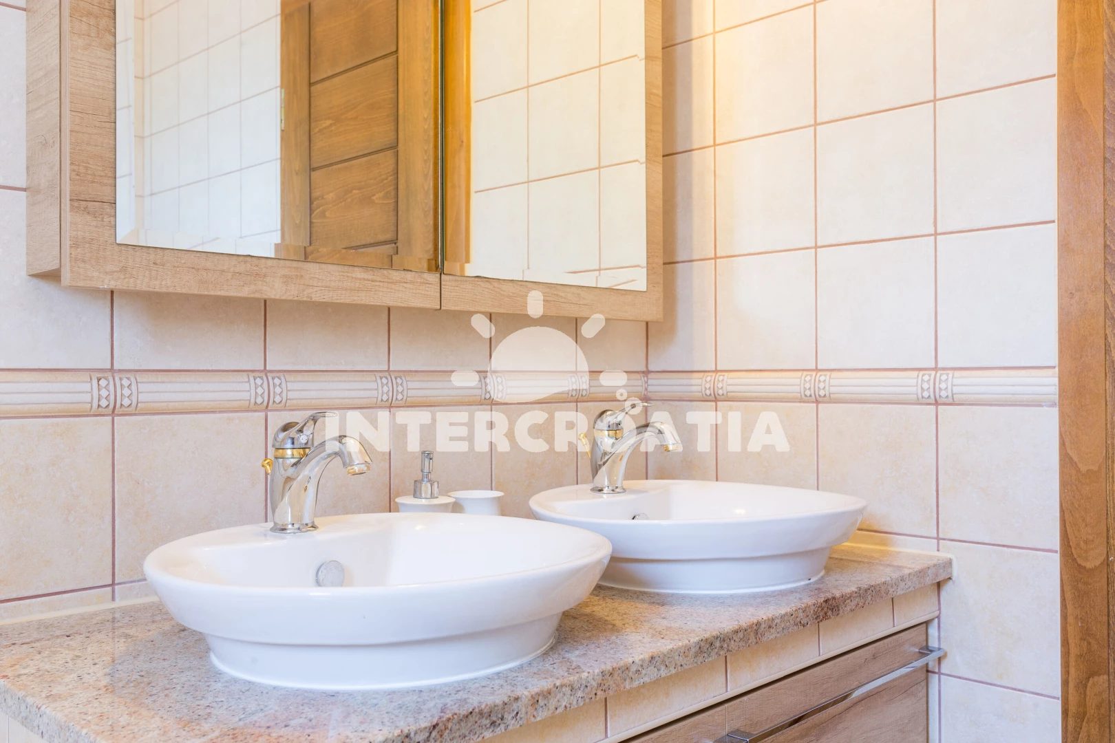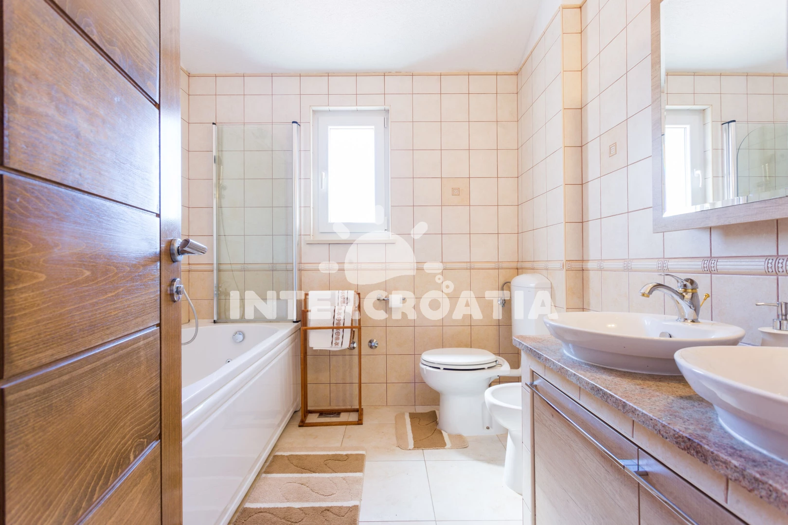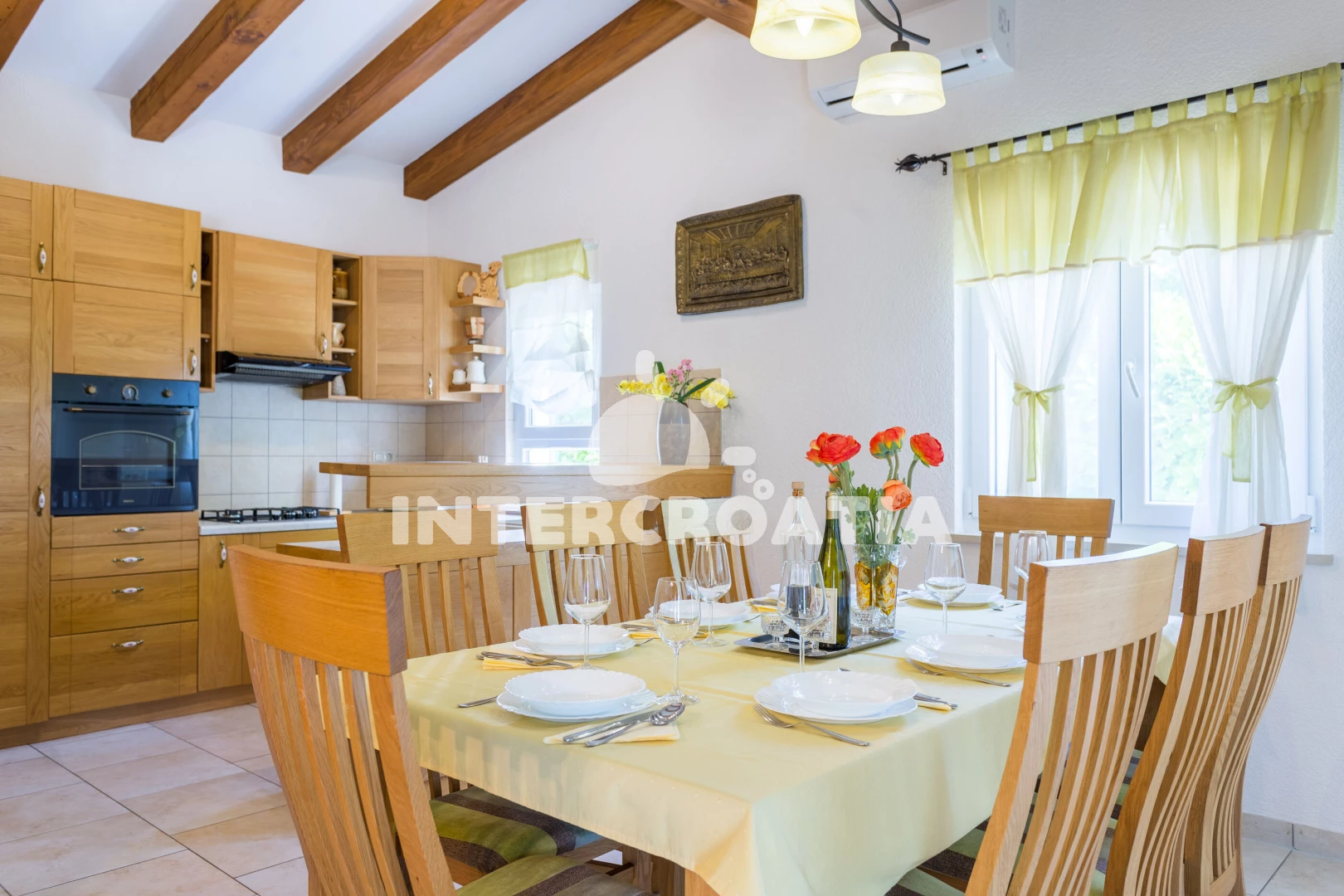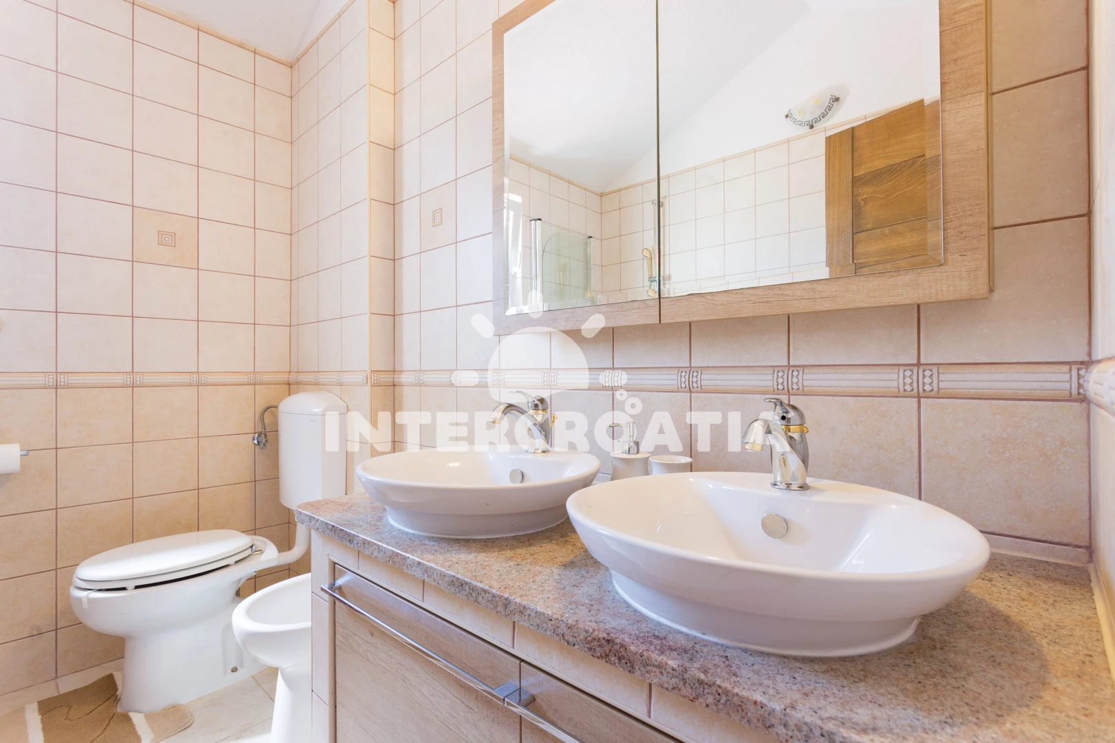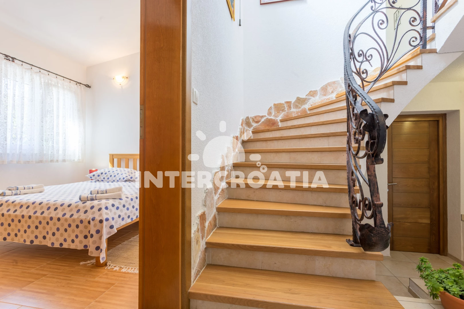 Vila (170 m2) s balkonem. Vila má 5 ložnic a je vhodná pro až 10 osob. Kuchyňská linka je vybavena varnou deskou, troubou, kávovarem, toustovačem, myčkou na nádobí, mikrovlnnou troubou, rychlovarnou konvicí, nádobím, lednicí, mrazákem. K dispozici televize, žehlička. První ložnice s dvoulůžkem. Druhá ložnice s dvoulůžkem. Třetí ložnice se 2 jednolůžky. Čtvrtá ložnice s dvoulůžkem. Pátá ložnice s dvoulůžkem. Koupelna se sprchovým koutem, umyvadlem, fénem a WC. Dále 2 samostatné WC.