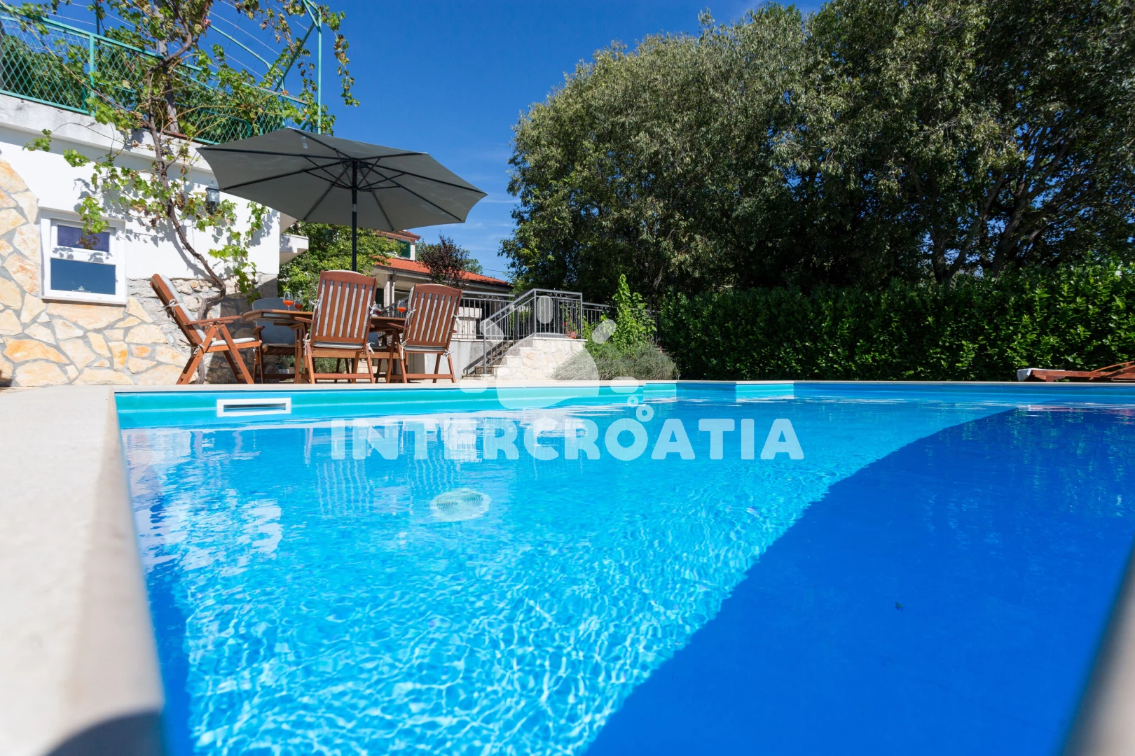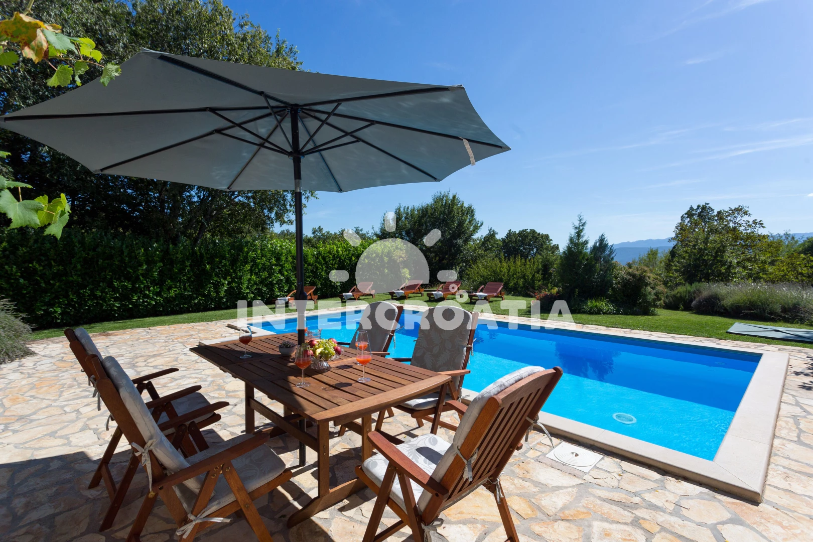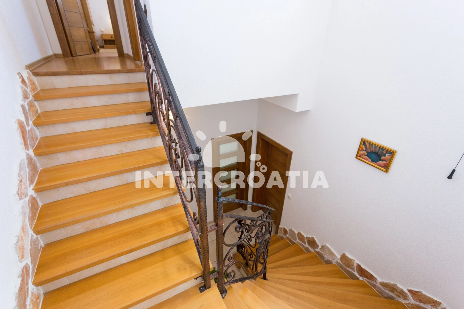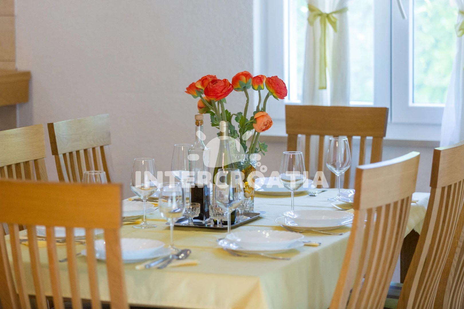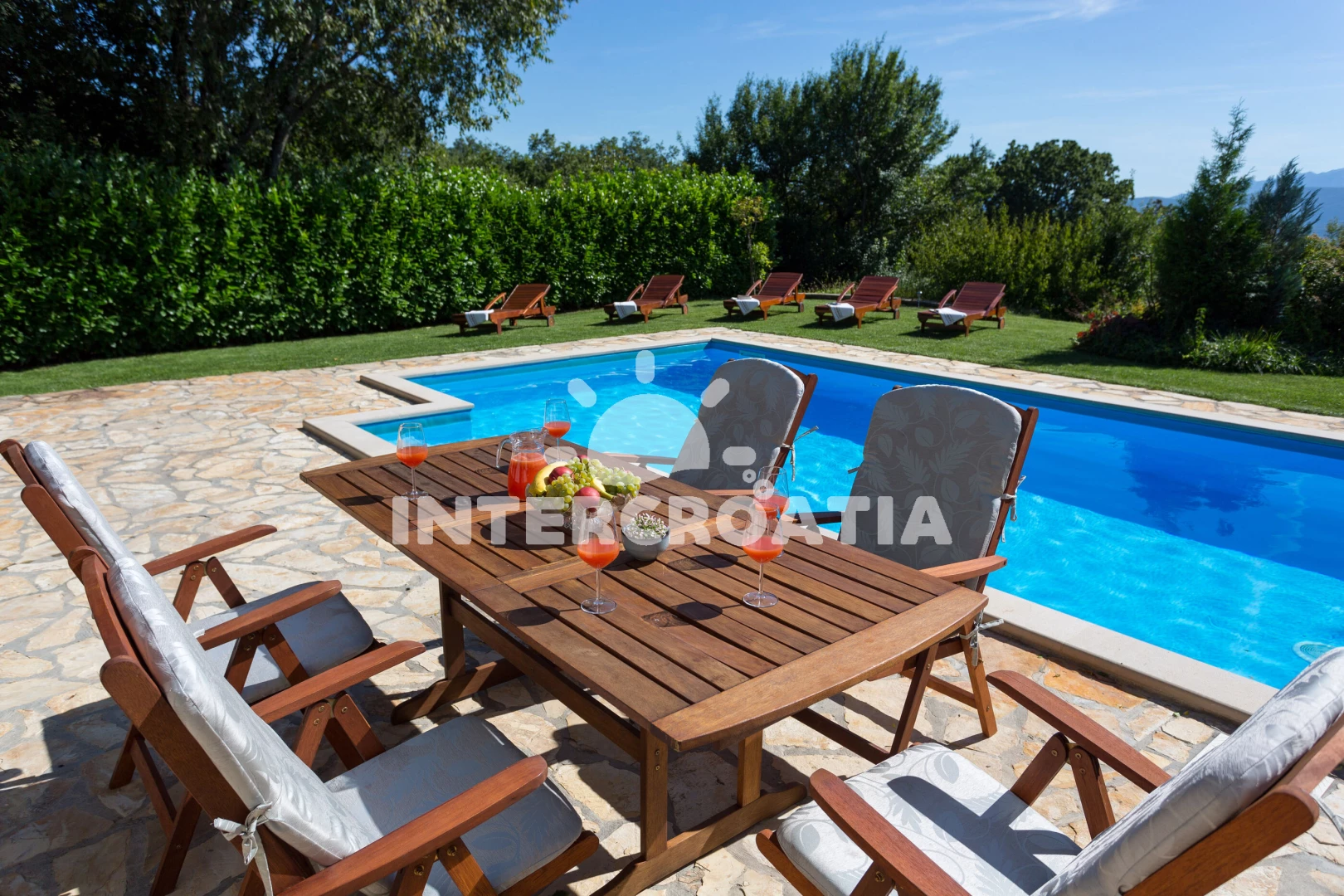 Vila (170 m2) s balkonem. Vila má 5 ložnic a je vhodná pro až 10 osob. Kuchyňská linka je vybavena varnou deskou, troubou, kávovarem, toustovačem, myčkou na nádobí, mikrovlnnou troubou, rychlovarnou konvicí, nádobím, lednicí, mrazákem. K dispozici televize, žehlička. První ložnice s dvoulůžkem. Druhá ložnice s dvoulůžkem. Třetí ložnice se 2 jednolůžky. Čtvrtá ložnice s dvoulůžkem. Pátá ložnice s dvoulůžkem. Koupelna se sprchovým koutem, umyvadlem, fénem a WC. Dále 2 samostatné WC.