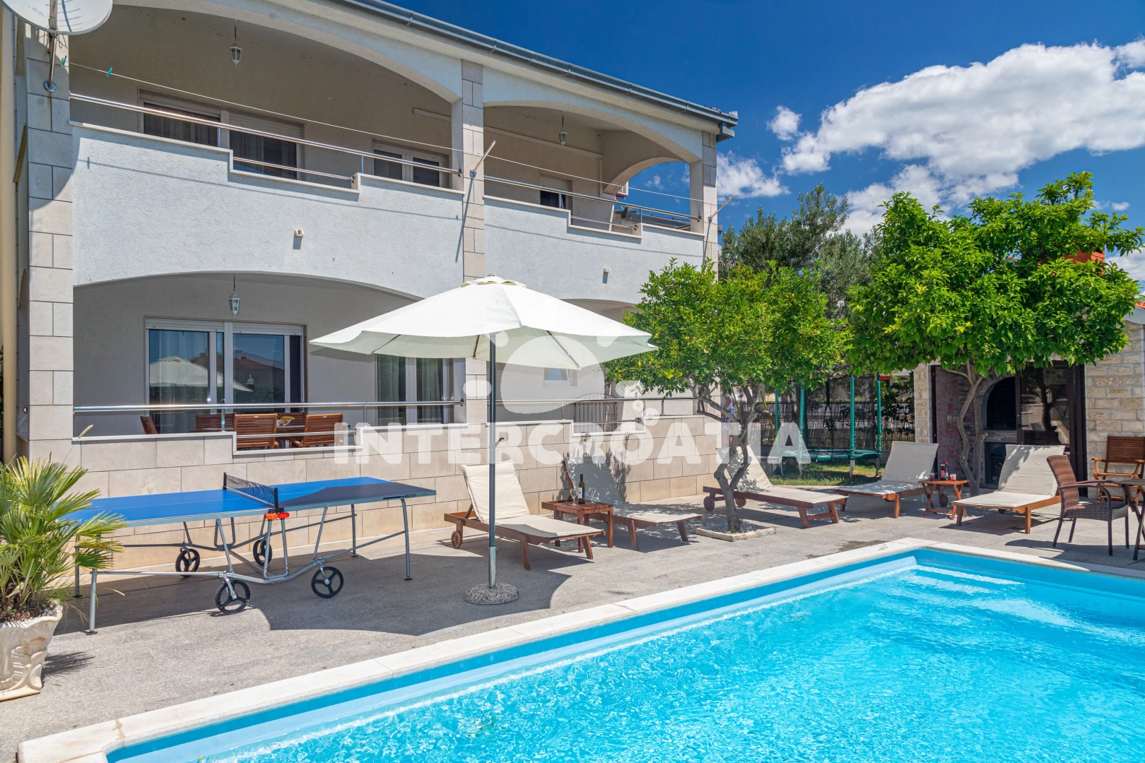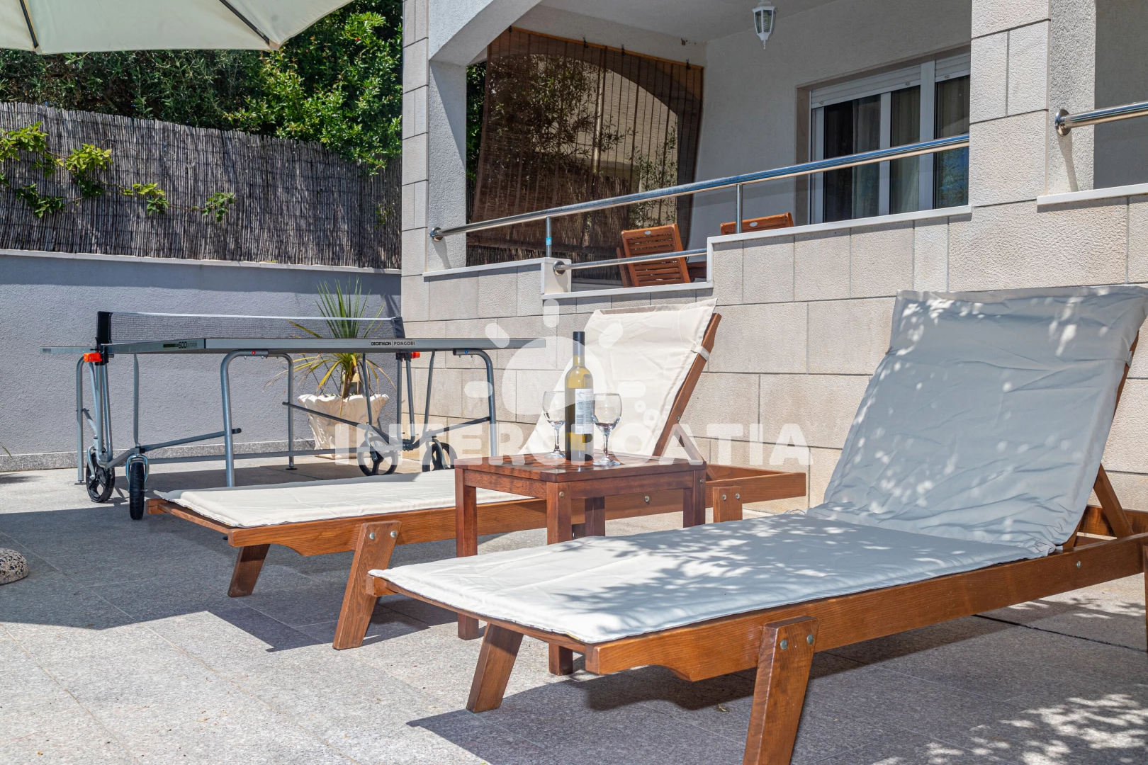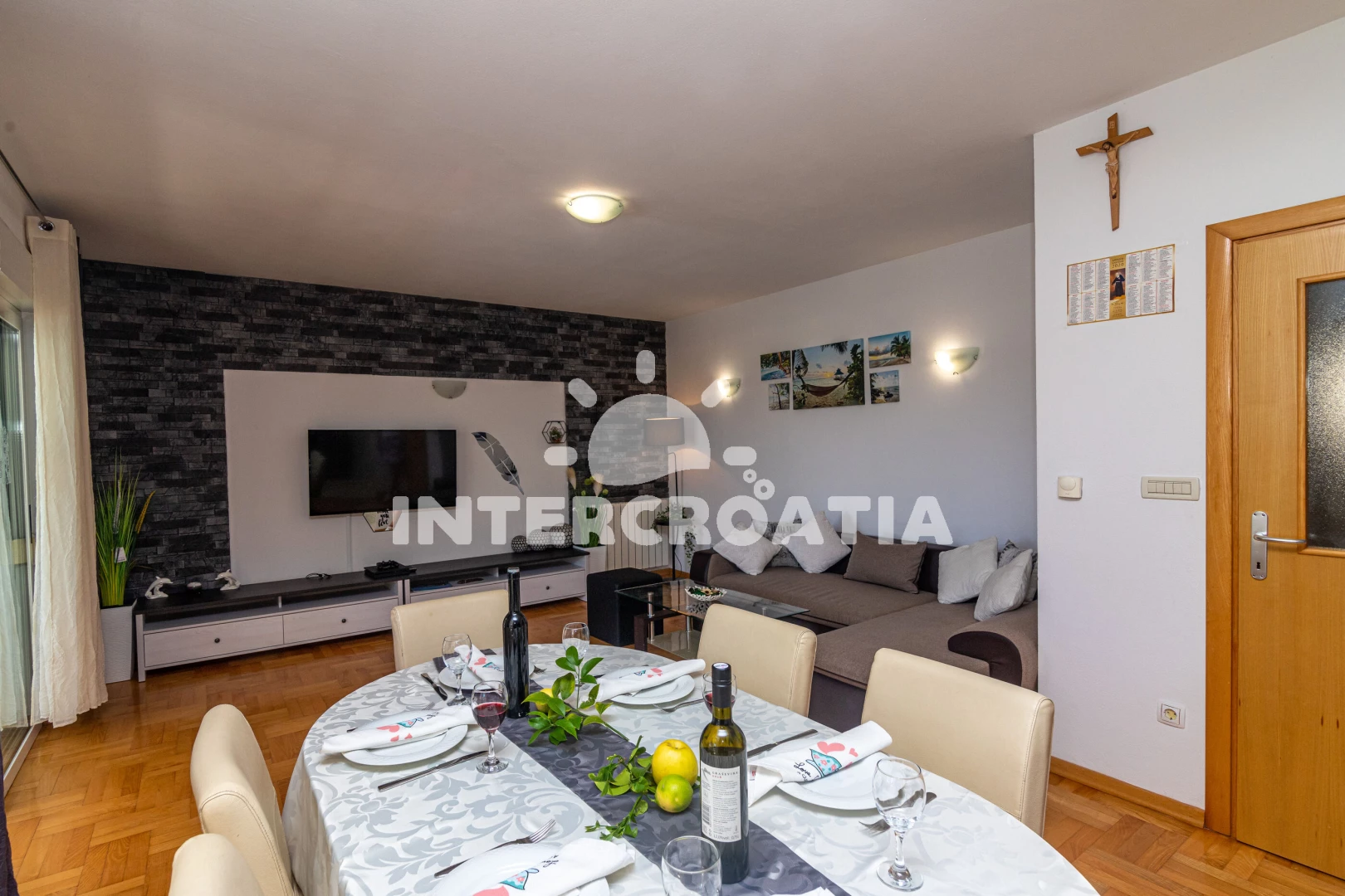 Vzdálenosti: Moře 800 m, pláž 1 km (oblázky), veřejná doprava 500 m, lékárna 500 m, supermarket 500 m, bar 700 m, restaurace 900 m, čerpací stanice 1 km, tenisové kurty 1 km, centrum 1 km, směnárna 1,2 km, pošta 1,2 km, potápění 2 km, banka 2,5 km, letiště (Split) 3 km, ambulance 3 km, muzeum 5 km, diskotéka 7 km, trajekt (Split) 20 km,