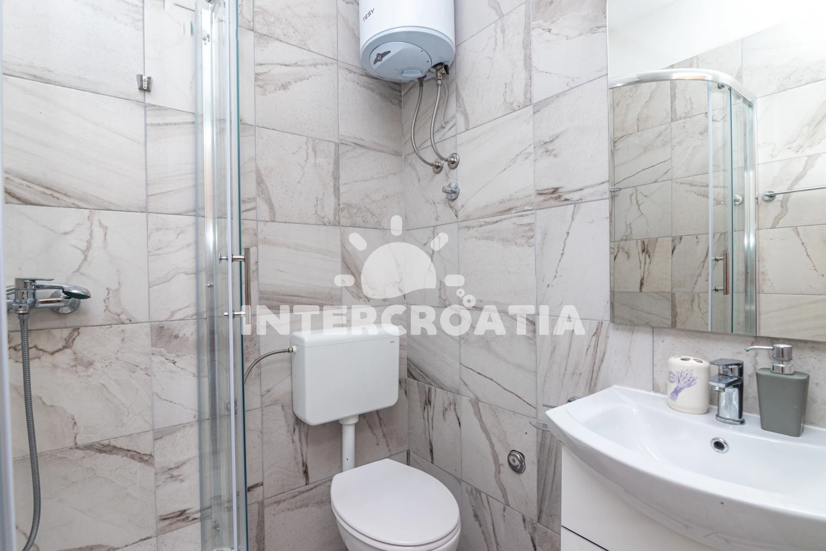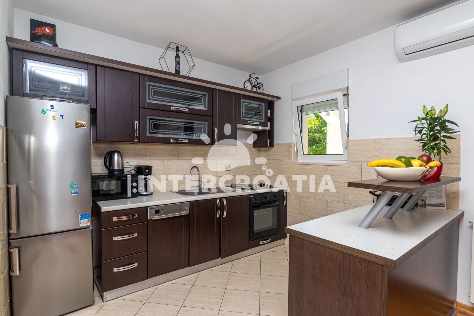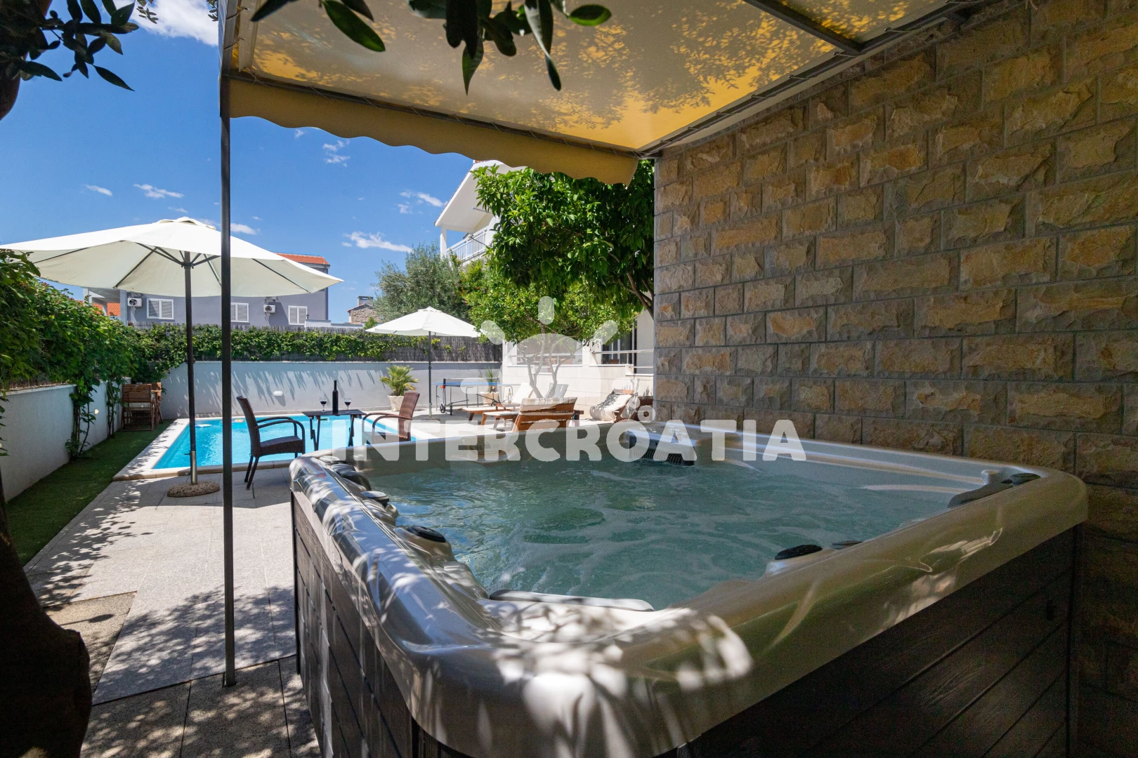 Vzdálenosti: Moře 800 m, pláž 1 km (oblázky), veřejná doprava 500 m, lékárna 500 m, supermarket 500 m, bar 700 m, restaurace 900 m, čerpací stanice 1 km, tenisové kurty 1 km, centrum 1 km, směnárna 1,2 km, pošta 1,2 km, potápění 2 km, banka 2,5 km, letiště (Split) 3 km, ambulance 3 km, muzeum 5 km, diskotéka 7 km, trajekt (Split) 20 km,