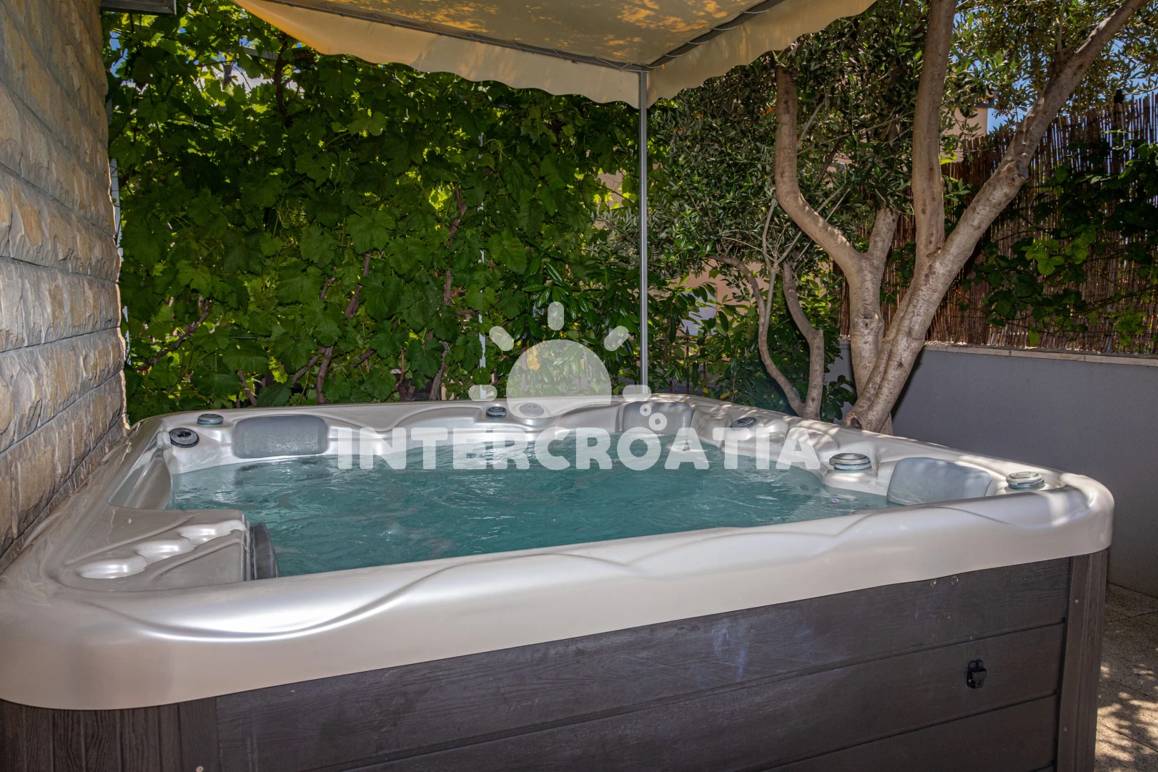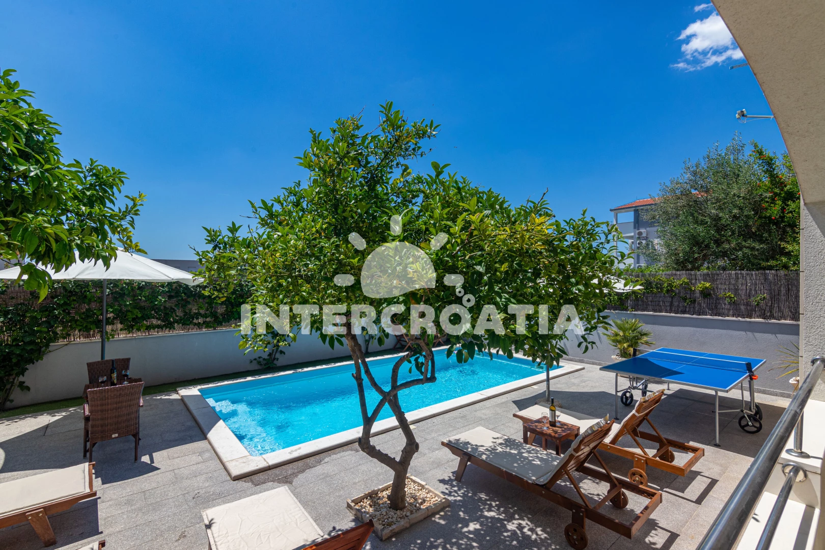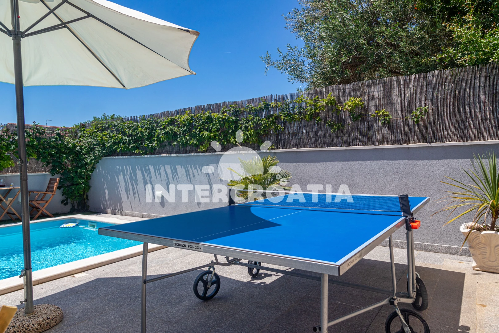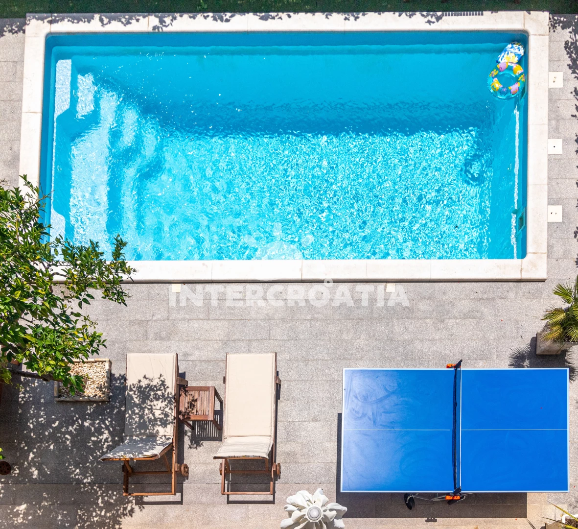 Vila se nachází 1000 m od moře a pláže. Pláž je oblázková. Vila disponuje bazénem s lehátky pro ubytované hosty. K dispozici vířivka. U objektu je k dispozici společná zahrada s posezením a grilem. Parkování je před domem.