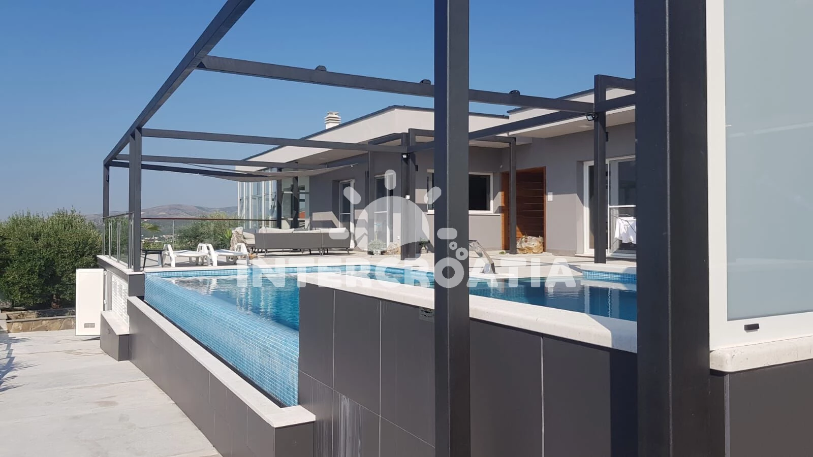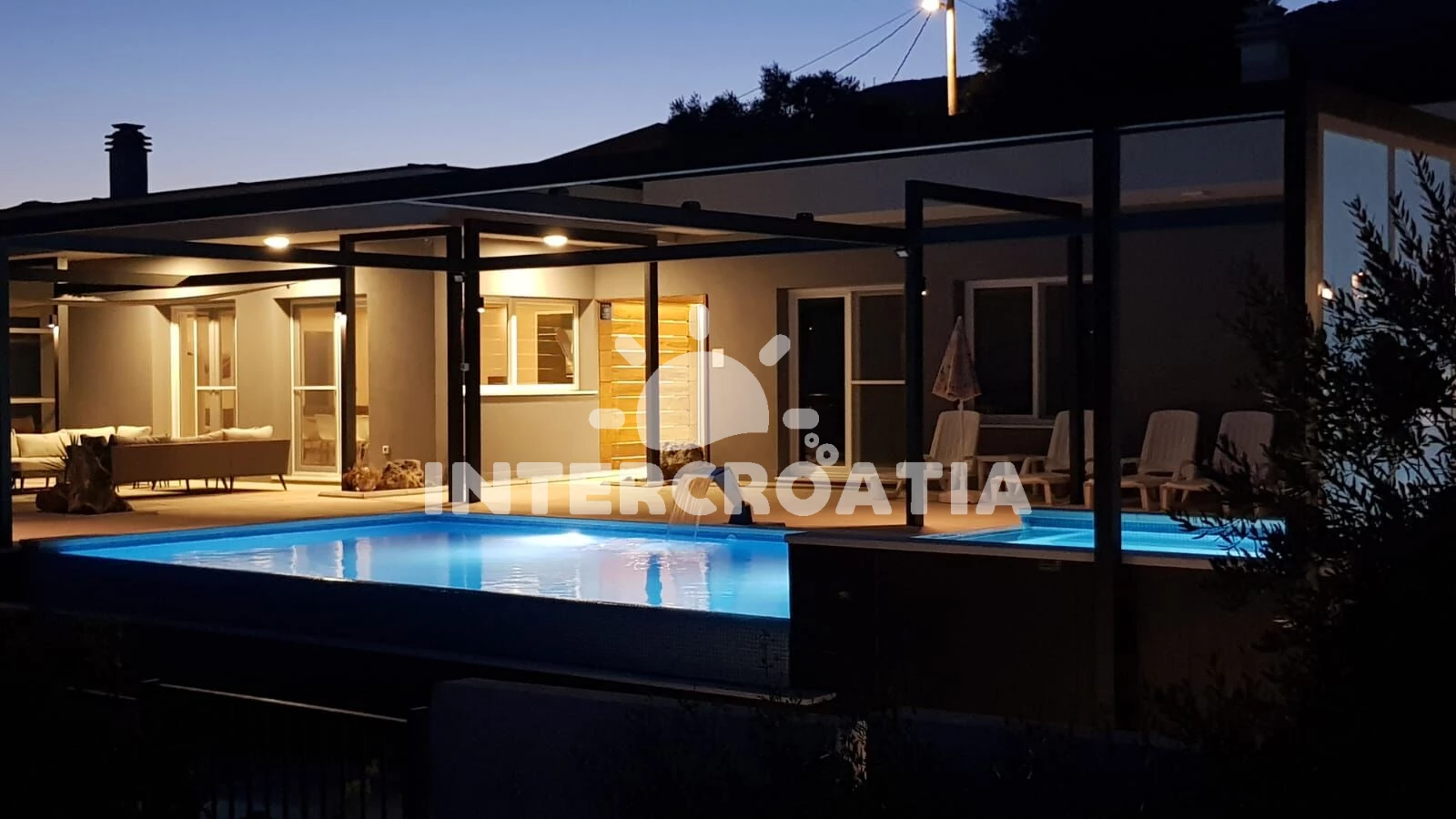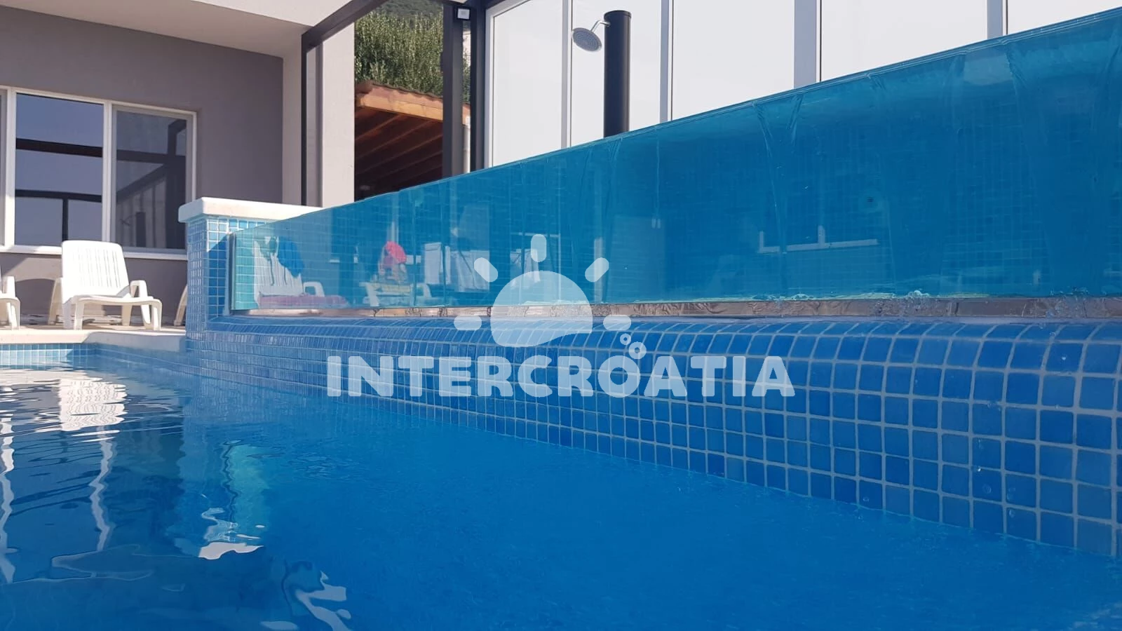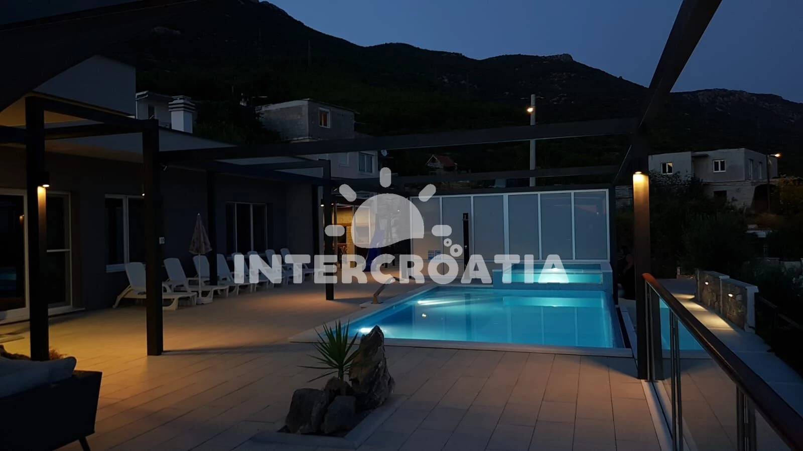 Vila se nachází 2000 m od moře a pláže. Pláž je oblázková a betonové desky. Vila disponuje bazénem s lehátky pro ubytované hosty. U objektu je k dispozici společná zahrada s posezením a grilem. Parkování je před domem.