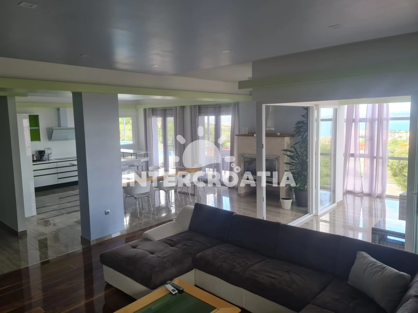 Vzdálenosti: Moře 2 km, pláž 2 km (oblázková a betonové desky), supermarket 1 km, bar 1 km, veřejná doprava 1,5 km, restaurace 1,5 km, čerpací stanice 1,5 km, směnárna 1,7 km, lékárna 1,7 km, ambulance 1,7 km, pošta 2 km, centrum 2 km, banka 2 km, marina 5 km, letiště (Split) 5 km, trajekt (Split) 15 km, park Plitvice 64 km,