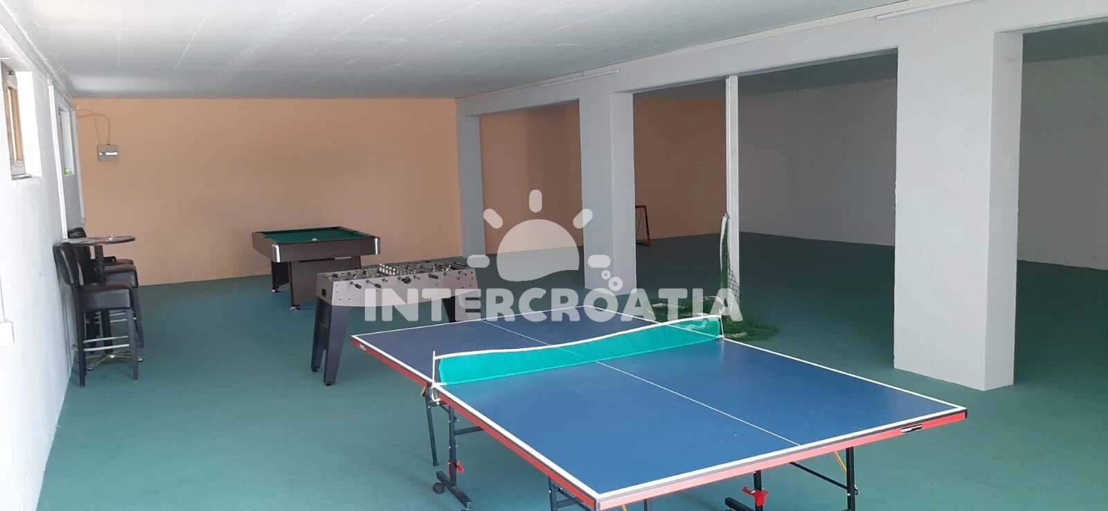 Vila (350 m2). Nachází se v přízemí objektu. Vila má 8 ložnic a je vhodná pro až 16 osob. Kuchyňská linka je vybavena varnou deskou, troubou, kávovarem, myčkou na nádobí, mikrovlnnou troubou, rychlovarnou konvicí, nádobím, lednicí, mrazákem. K dispozici televize, sejf, žehlička. První ložnice s dvoulůžkem. Druhá ložnice s dvoulůžkem. Třetí ložnice s dvoulůžkem. Čtvrtá ložnice s dvoulůžkem. Pátá ložnice se 2 jednolůžky. Šestá ložnice se 2 jednolůžky. Sedmá ložnice se 2 jednolůžky. Osmá ložnice se 2 jednolůžky. První koupelna se sprchovým koutem, umyvadlem, fénem a WC. Druhá koupelna se sprchovým koutem, umyvadlem, fénem a WC. Třetí koupelna se sprchovým koutem, umyvadlem, fénem a WC. Čtvrtá koupelna se sprchovým koutem, umyvadlem, fénem a WC. Pátá koupelna se sprchovým koutem, umyvadlem, fénem a WC. Šestá koupelna se sprchovým koutem, umyvadlem, fénem a WC. Sedmá koupelna se sprchovým koutem, umyvadlem, fénem a WC. Osmá koupelna se sprchovým koutem, umyvadlem, fénem a WC. Dále 2 samostatné WC.