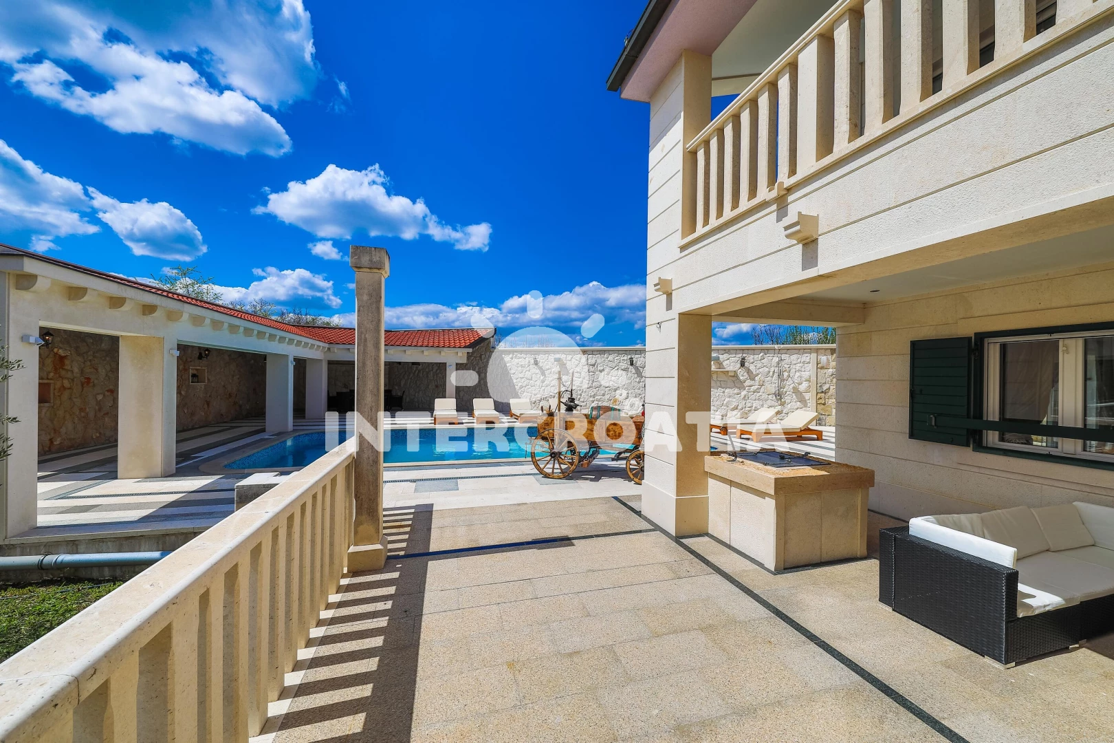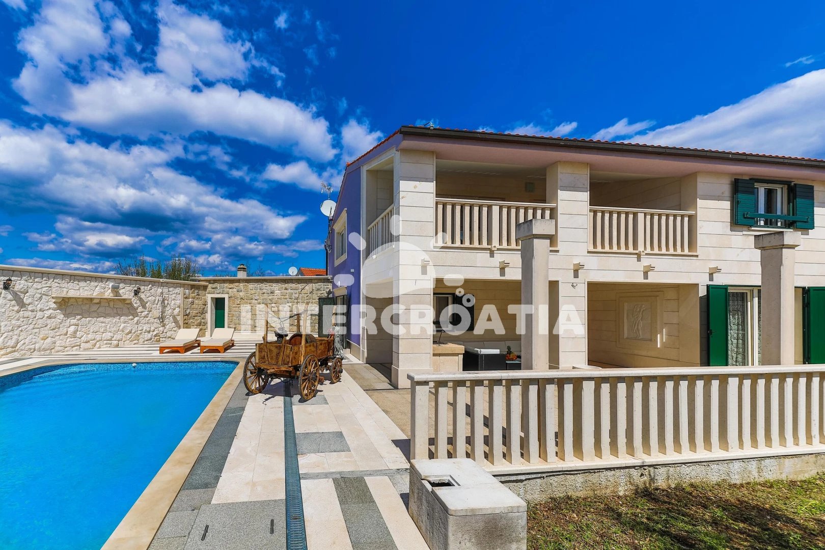 Vila (250 m2) s balkonem. Nachází se ve dvou patrech objektu. Vila má 1 ložnici a je vhodná pro až 10 osob. Kuchyňská linka je vybavena varnou deskou, troubou, kávovarem, toustovačem, myčkou na nádobí, mikrovlnnou troubou, rychlovarnou konvicí, nádobím, lednicí, mrazákem. V obývací místnosti je rozložitelná pohovka (extra lůžko pro 2 osoby). K dispozici televize se satelitním programem, žehlička. První koupelna se sprchovým koutem, umyvadlem, WC. Druhá koupelna se sprchovým koutem, umyvadlem, WC. Třetí koupelna se sprchovým koutem, umyvadlem, WC. Čtvrtá koupelna se sprchovým koutem, umyvadlem, WC. Pátá koupelna se sprchovým koutem, umyvadlem, WC.