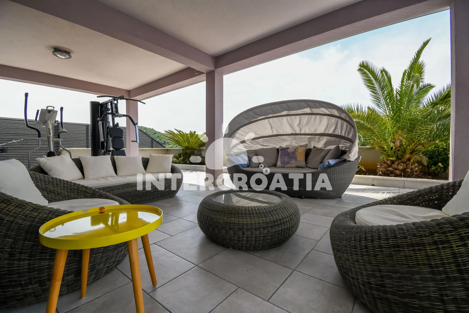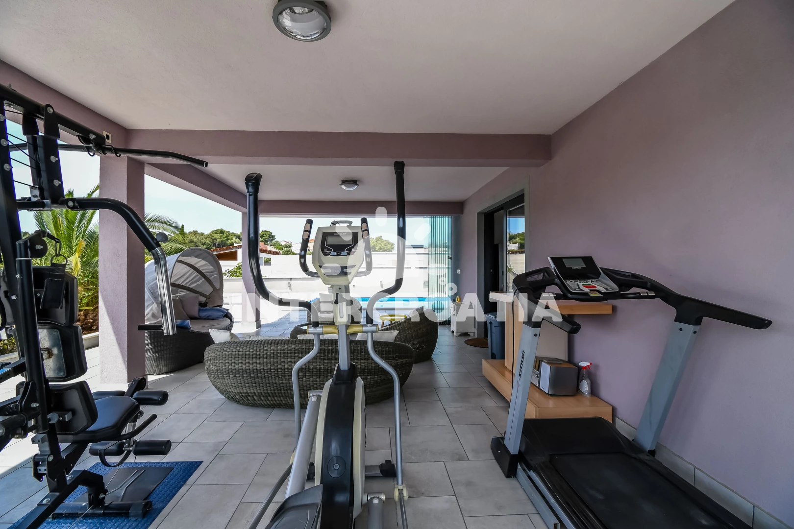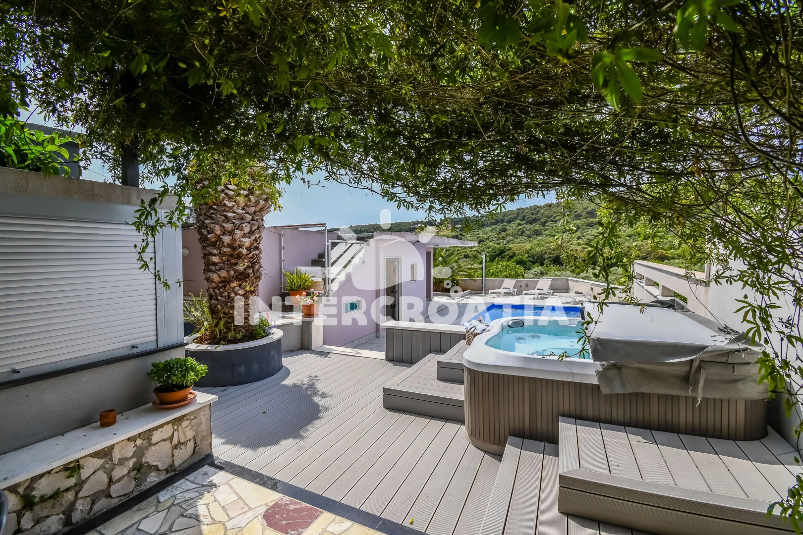 Vila se nachází 300 m od moře a pláže. Pláž je oblázková a betonové desky. Vila disponuje bazénem s lehátky pro ubytované hosty. K dispozici vířivka, posilovna. U objektu je k dispozici společná zahrada s posezením a grilem.