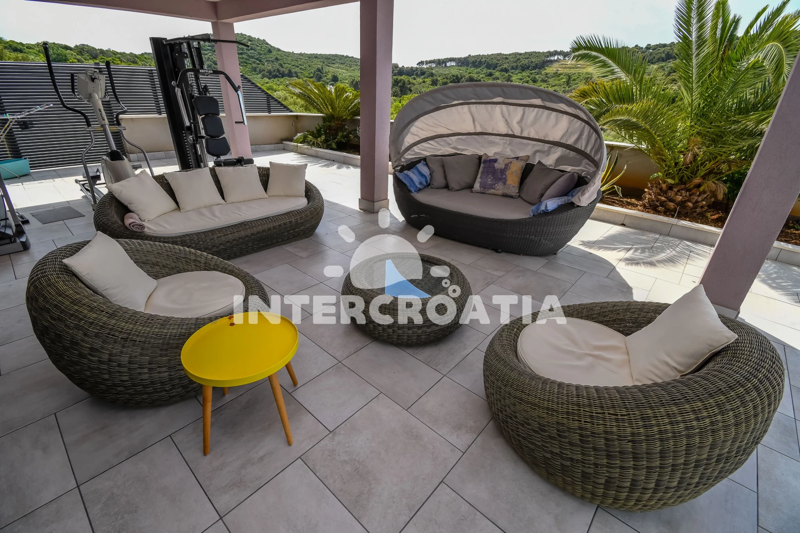 Vzdálenosti: Moře 200 m, pláž 300 m (oblázková a betonové desky), supermarket 70 m, restaurace 100 m, bar 100 m, kotviště pro čluny 200 m, marina 300 m, pošta 400 m, tenisové kurty 2 km, centrum 3 km, směnárna 4 km, ambulance 4 km, lékárna 4 km, muzeum 4 km, půjčovna kol 4 km, potápění 4 km, čerpací stanice 7 km, banka 8 km, letiště (Split) 10 km, trajekt (Split) 35 km,