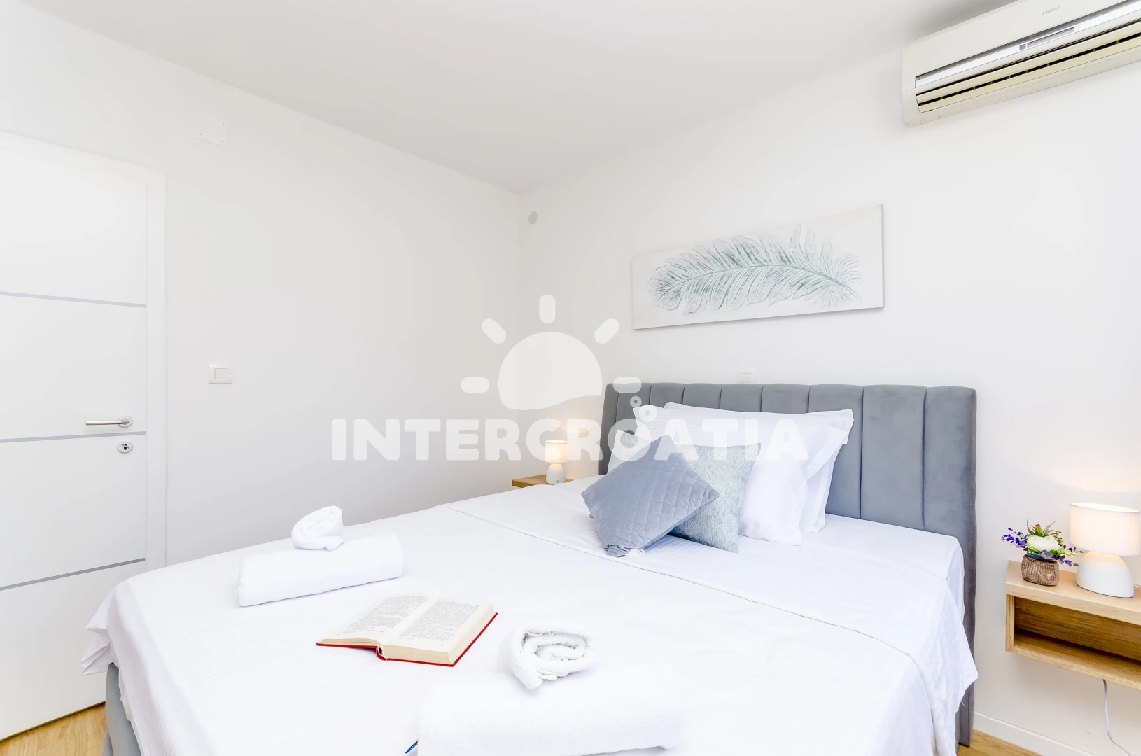 Vzdálenosti: Moře 80 m, pláž 80 m (oblázky), supermarket 100 m, bar 150 m, potápění 200 m, restaurace 200 m, půjčovna motorových člunů 300 m, půjčovna kol 500 m, směnárna 1 km, lékárna 1 km, ambulance 1 km, centrum 1 km, pošta 1 km, muzeum 2 km, marina 2 km, banka 2 km, čerpací stanice 3 km, letiště (Split) 8 km, trajekt (Split) 30 km,