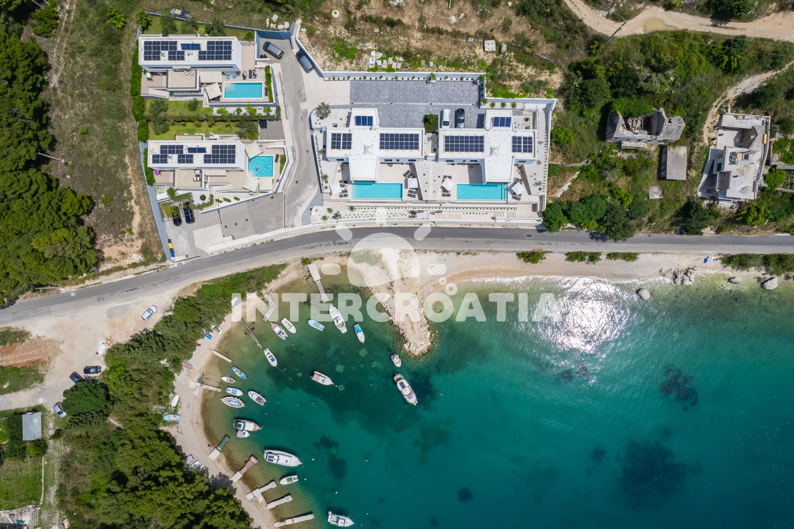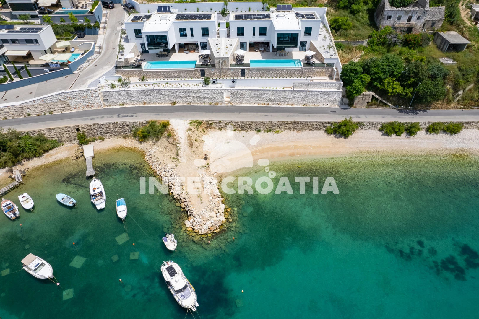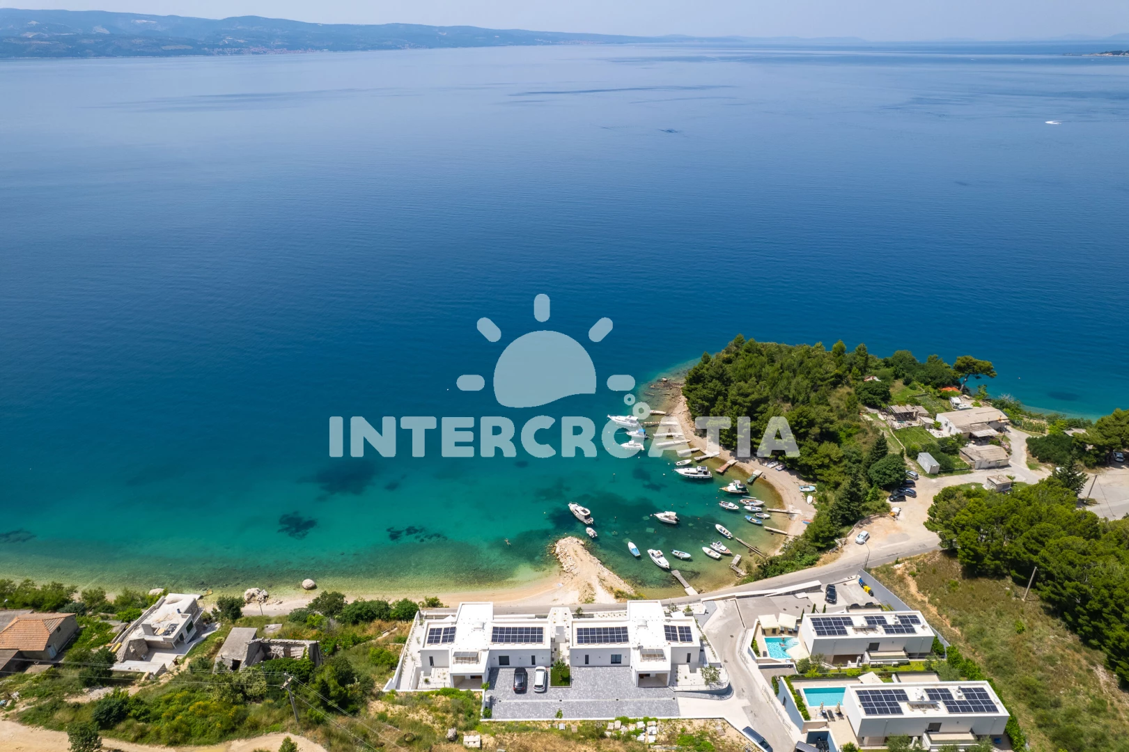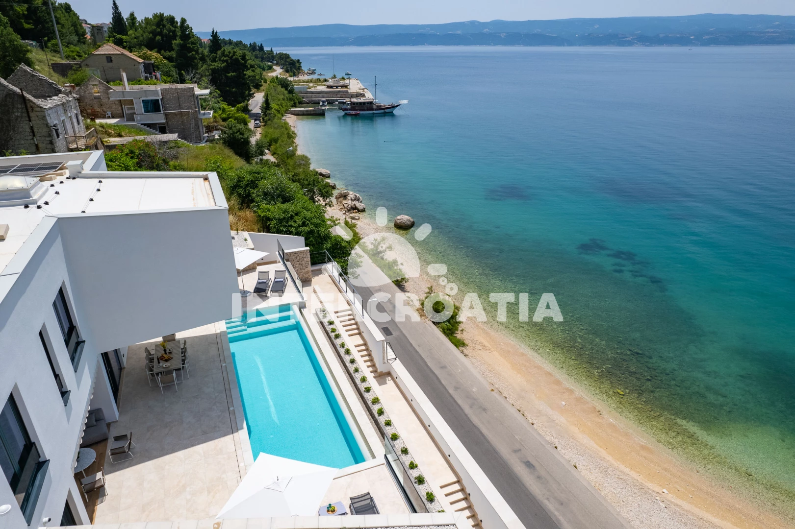 Vzdálenosti: Moře 35 m, pláž 35 m (oblázky), restaurace 130 m, bar 500 m, veřejná doprava 700 m, supermarket 1 km, ambulance 1,5 km, centrum 1,9 km, lékárna 1,9 km, směnárna 1,9 km, potápění 2 km, půjčovna kol 2 km, pošta 2 km, muzeum 2 km, banka 2 km, marina 2 km, tenisové kurty 3 km, čerpací stanice 3 km, trajekt (Split) 25 km, diskotéka 25 km, letiště (Split) 45 km,
