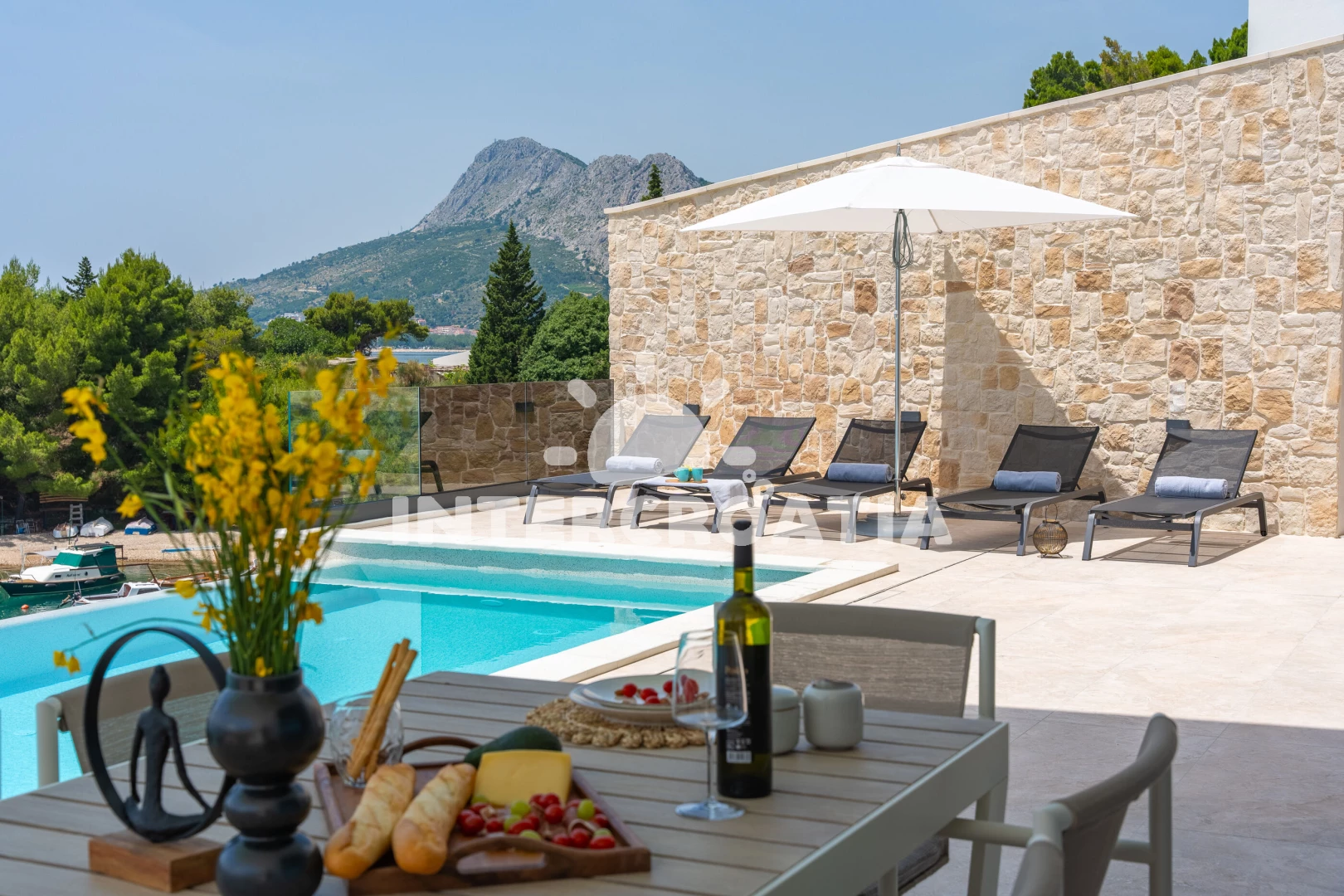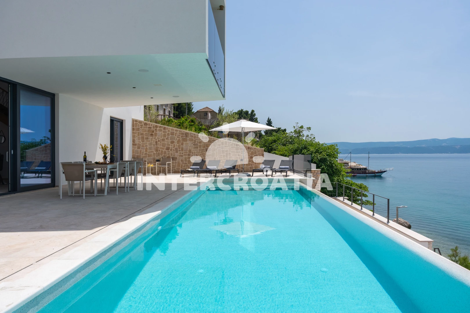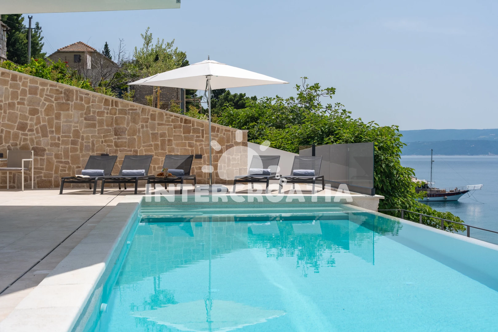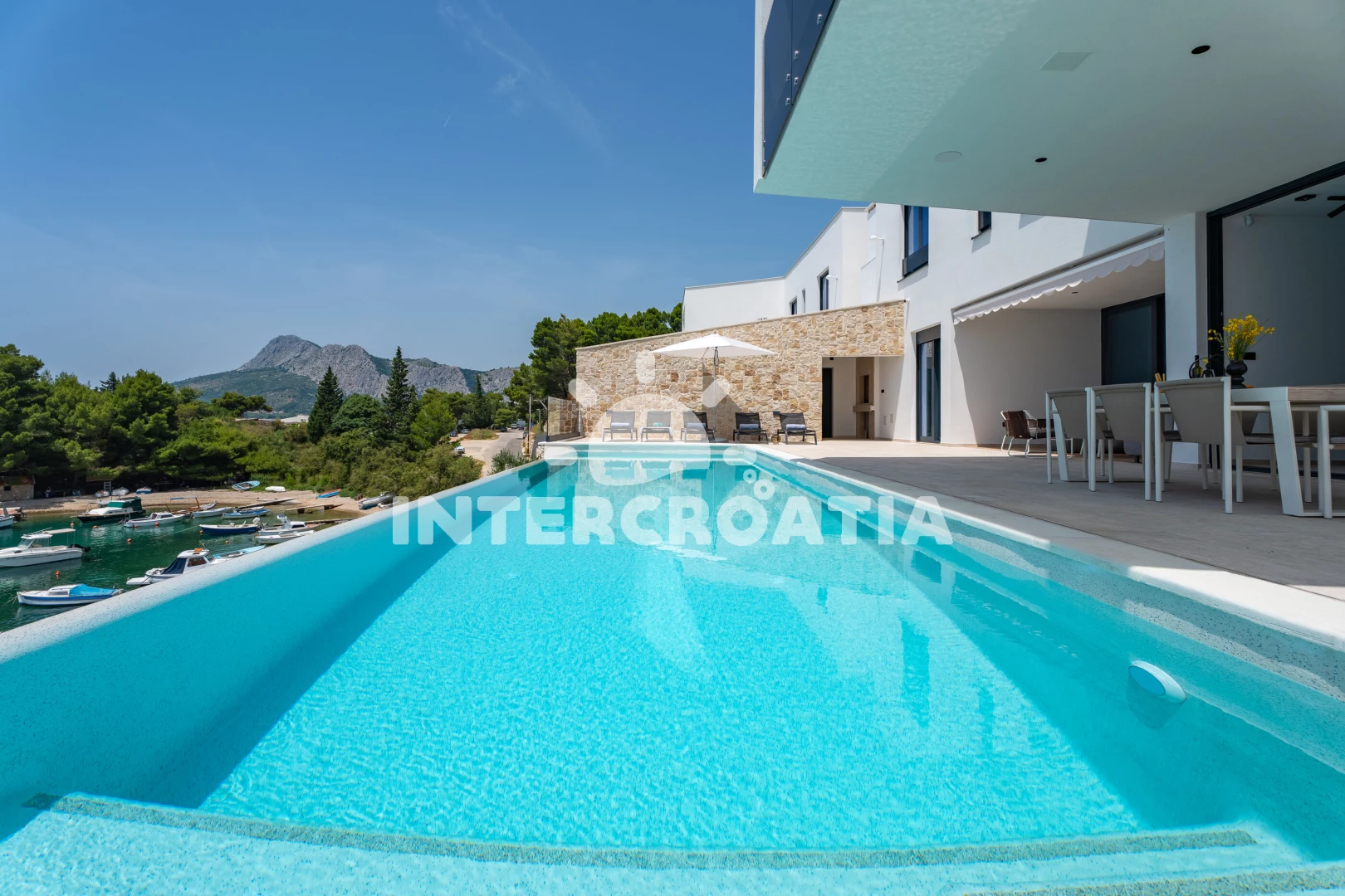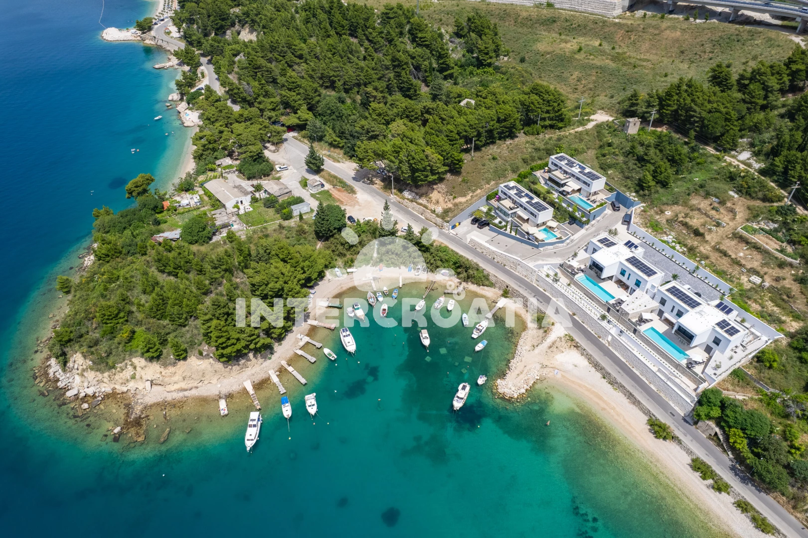 Vzdálenosti: Moře 35 m, pláž 35 m (oblázky), restaurace 130 m, bar 500 m, veřejná doprava 700 m, supermarket 1 km, ambulance 1,5 km, centrum 1,9 km, lékárna 1,9 km, směnárna 1,9 km, potápění 2 km, půjčovna kol 2 km, pošta 2 km, muzeum 2 km, banka 2 km, marina 2 km, tenisové kurty 3 km, čerpací stanice 3 km, trajekt (Split) 25 km, diskotéka 25 km, letiště (Split) 45 km,