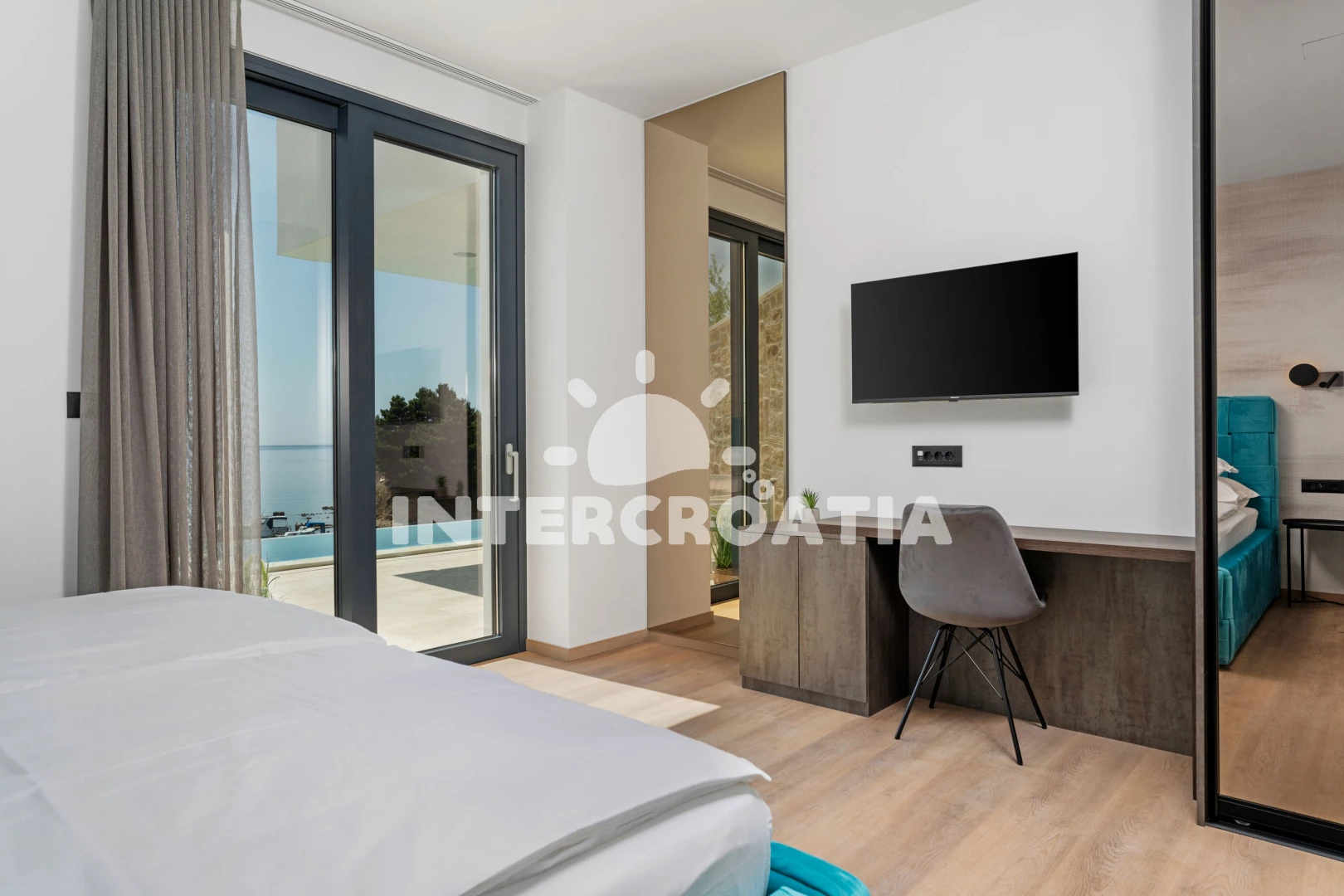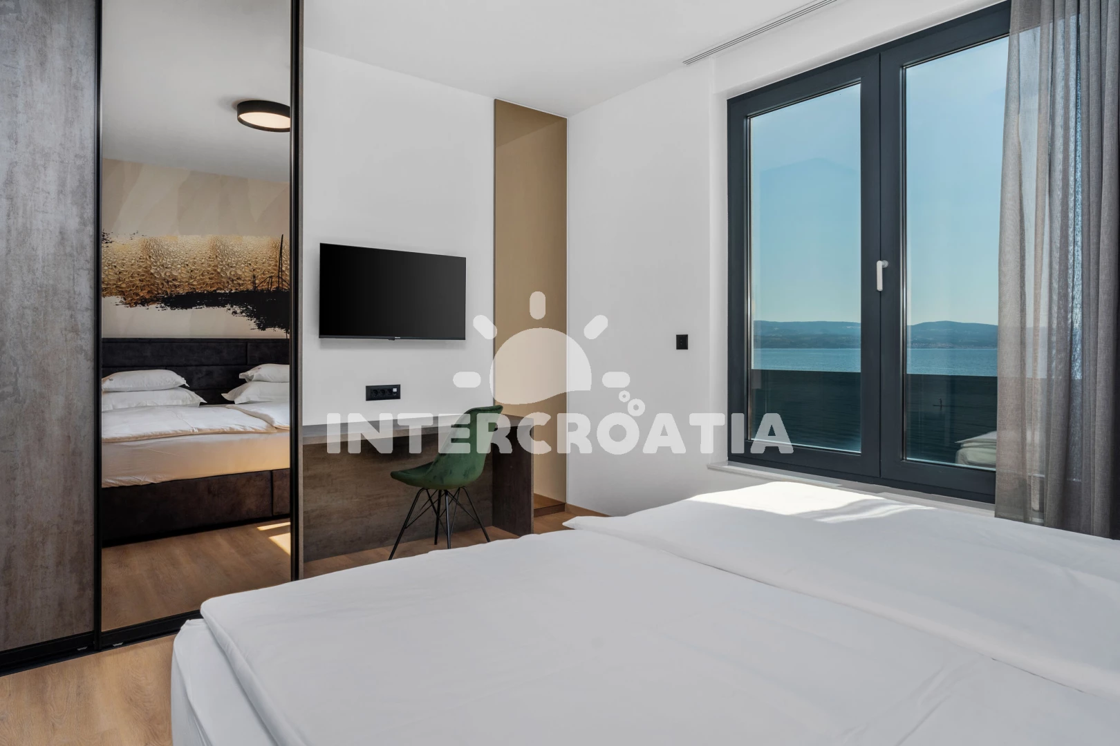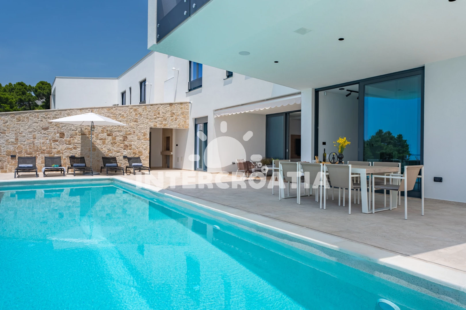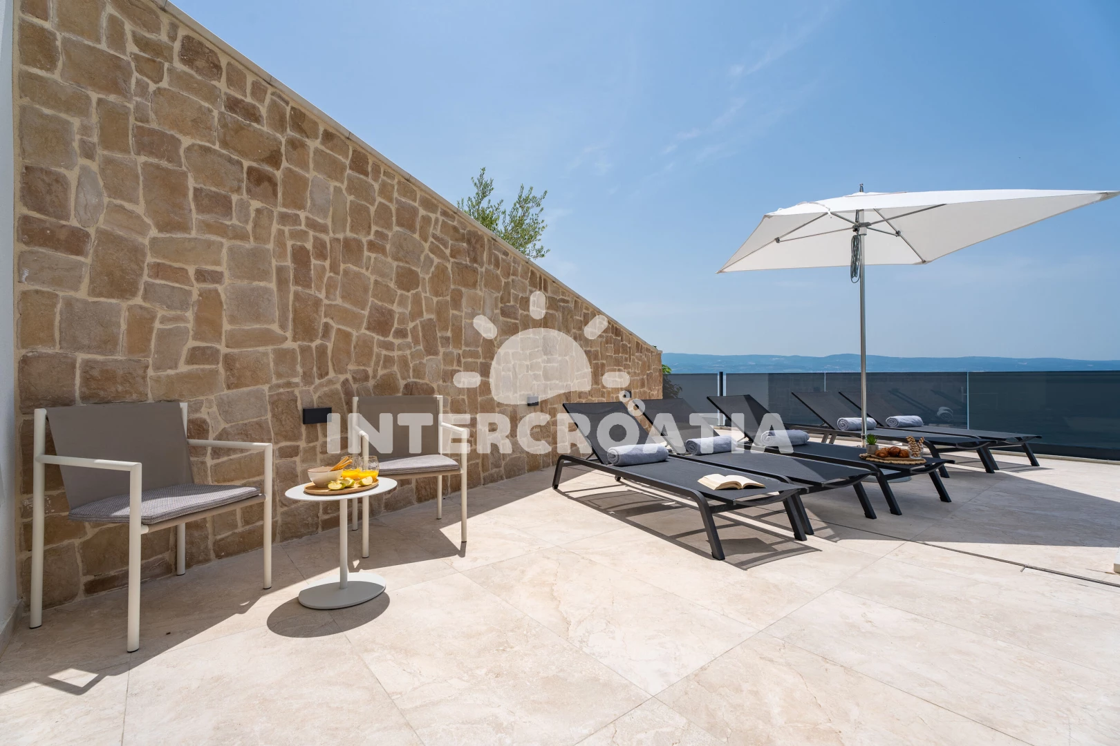 Vila (306 m2) s balkonem, a výhledem na moře. Vila má 5 ložnic a je vhodná pro až 10 osob. Kuchyňská linka je vybavena varnou deskou, toustovačem, troubou, kávovarem, myčkou na nádobí, mikrovlnnou…