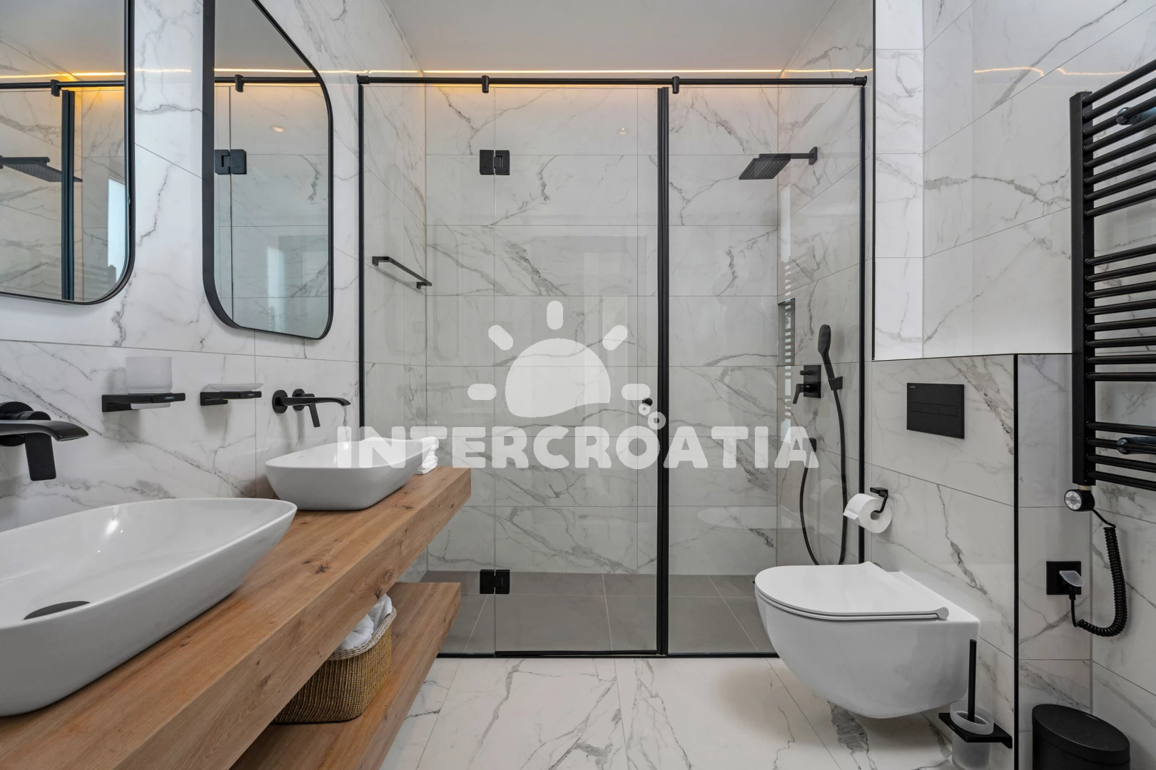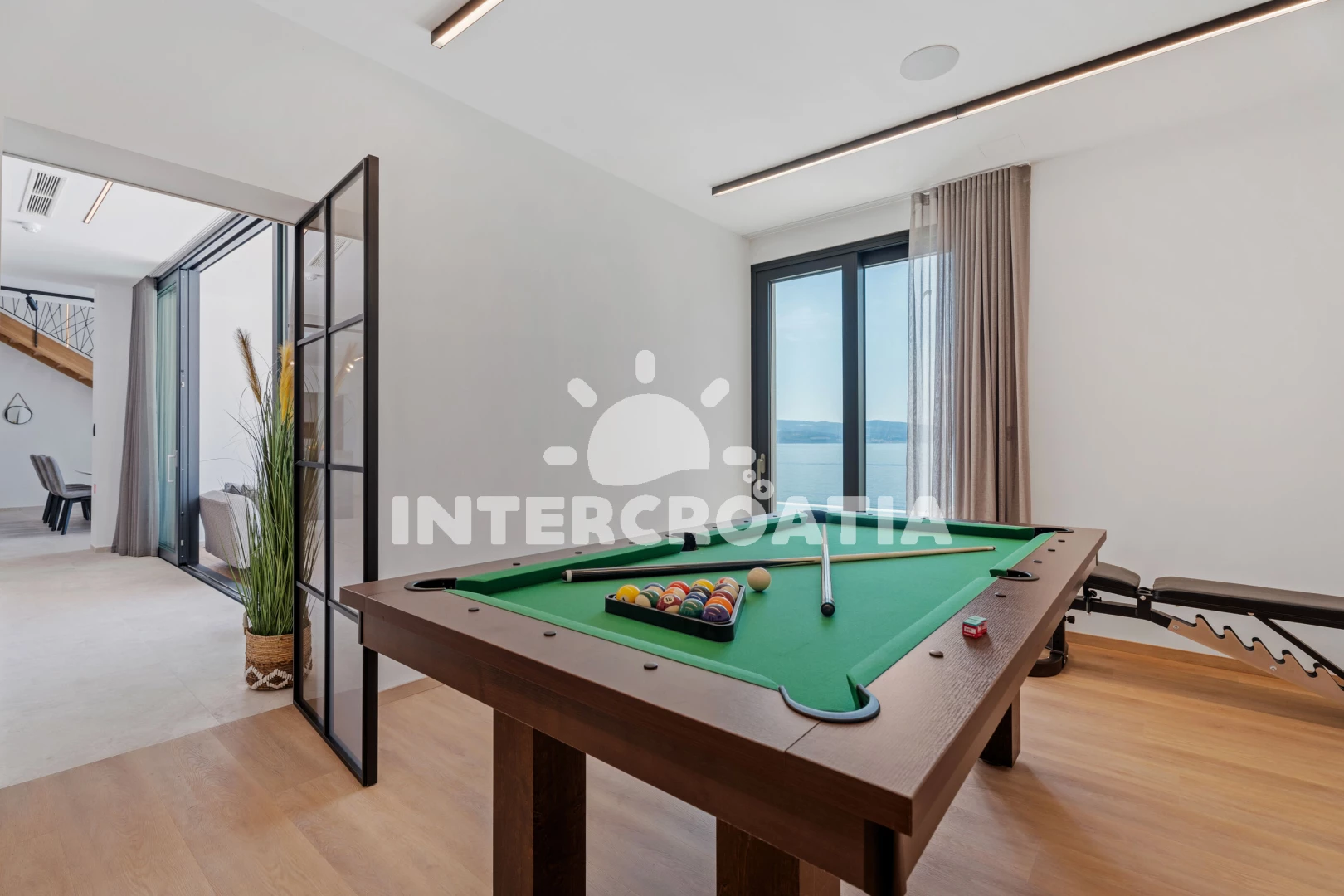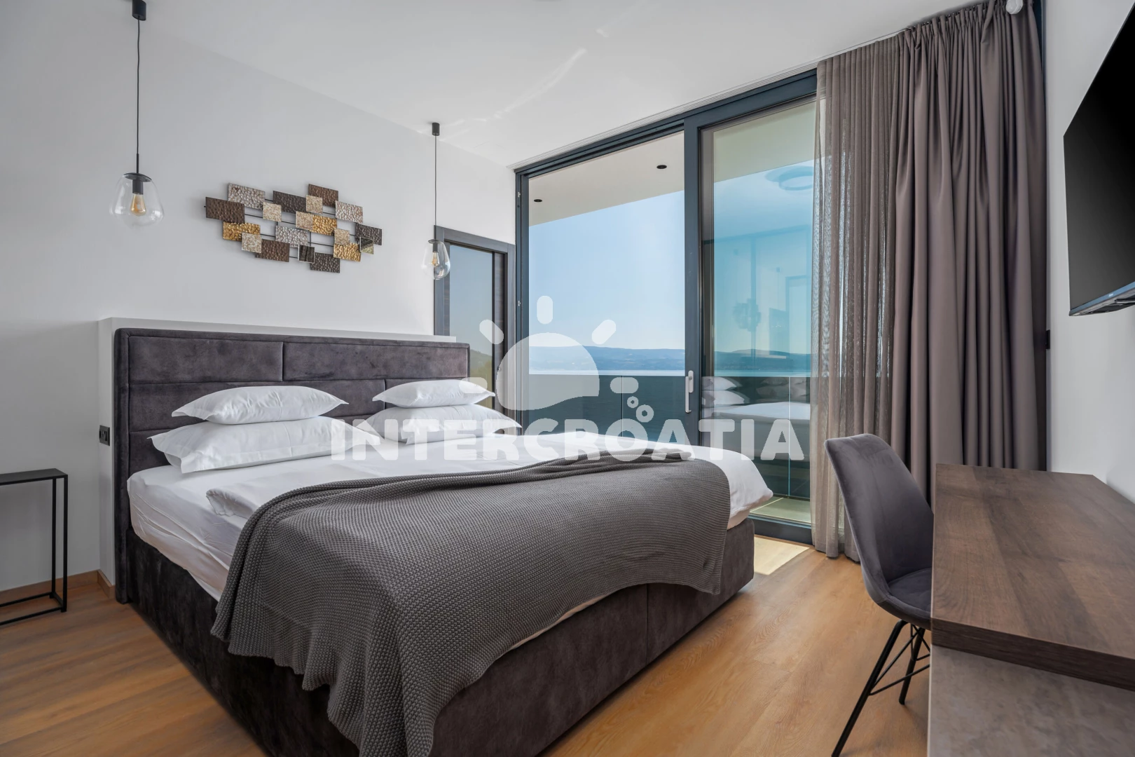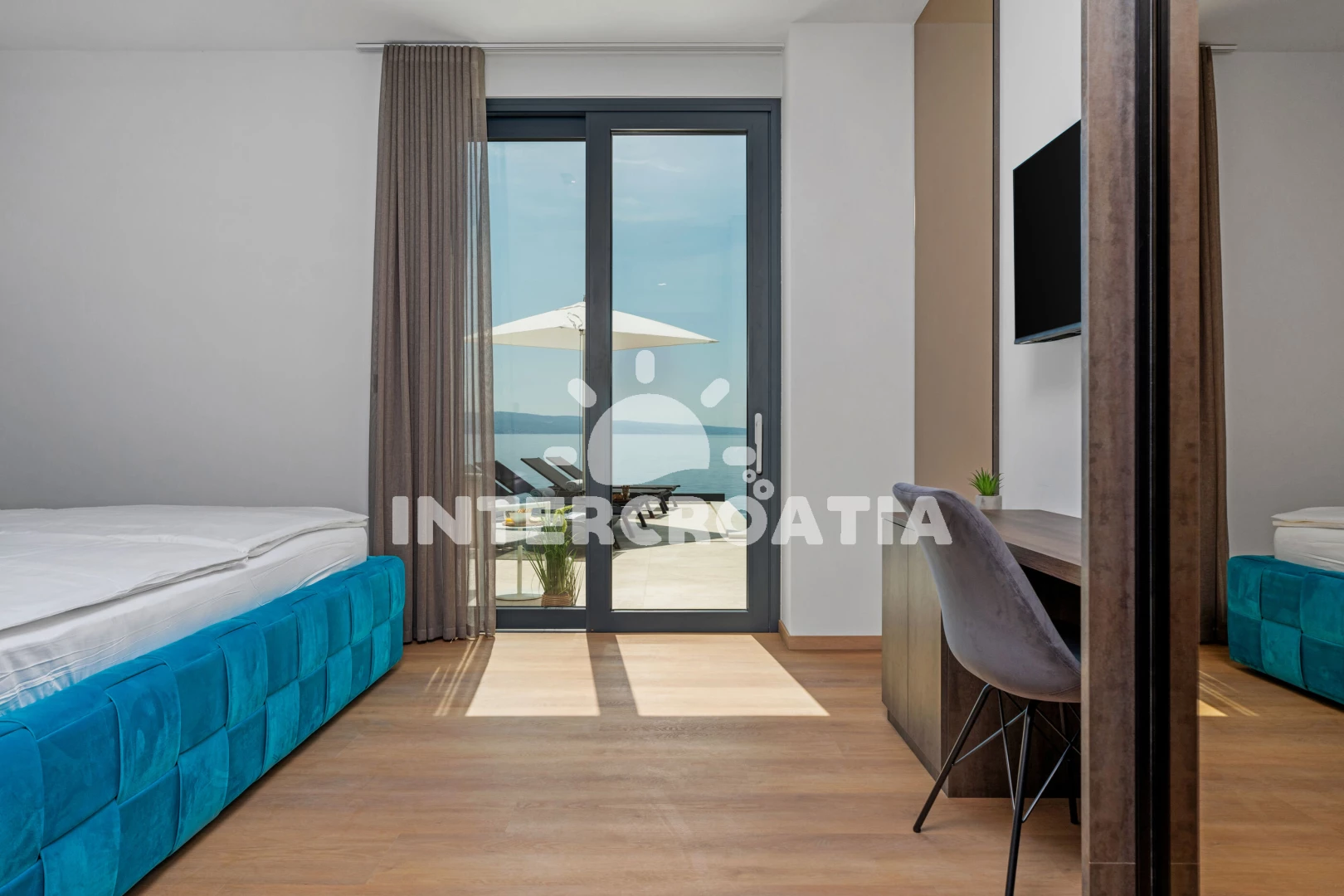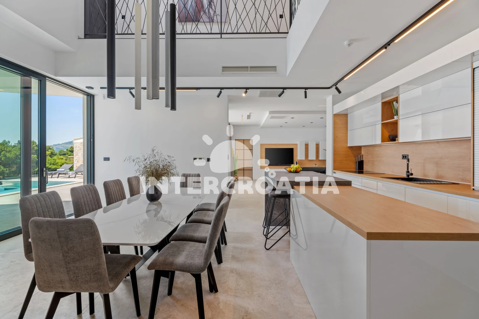 Vila (306 m2) s balkonem, a výhledem na moře. Vila má 5 ložnic a je vhodná pro až 10 osob. Kuchyňská linka je vybavena varnou deskou, toustovačem, troubou, kávovarem, myčkou na nádobí, mikrovlnnou…