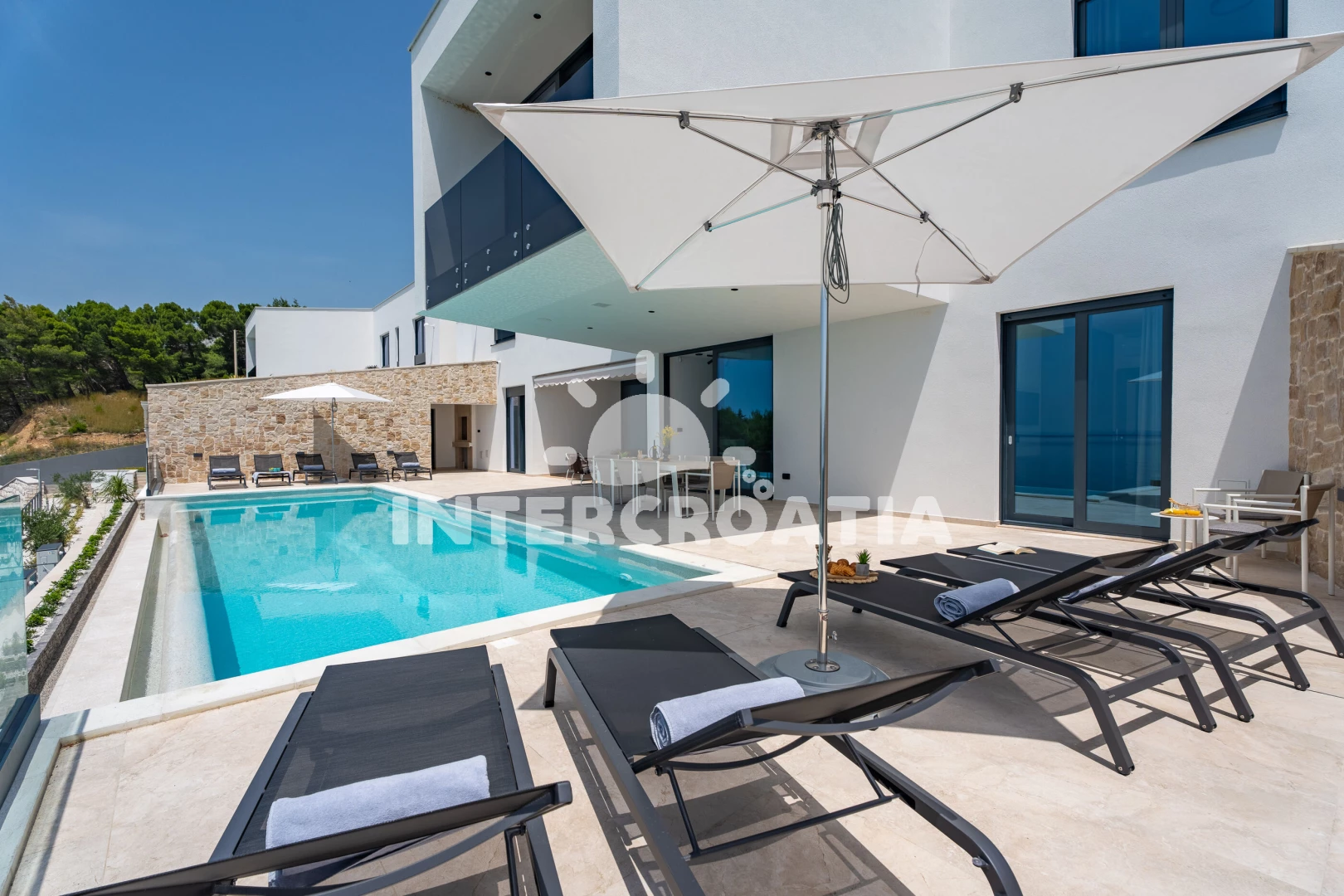 Vila (306 m2) s balkonem, a výhledem na moře. Vila má 5 ložnic a je vhodná pro až 10 osob. Kuchyňská linka je vybavena varnou deskou, toustovačem, troubou, kávovarem, myčkou na nádobí, mikrovlnnou troubou, rychlovarnou konvicí, nádobím, lednicí, mrazákem. K dispozici televize, sejf, žehlička. První ložnice s dvoulůžkem. Druhá ložnice s dvoulůžkem. Třetí ložnice s dvoulůžkem. Čtvrtá ložnice s dvoulůžkem. Pátá ložnice s dvoulůžkem. První koupelna se sprchovým koutem, umyvadlem, fénem a WC. Druhá koupelna se sprchovým koutem, umyvadlem, fénem a WC. Třetí koupelna se sprchovým koutem, umyvadlem, fénem a WC. Čtvrtá koupelna se sprchovým koutem, umyvadlem, fénem a WC. Pátá koupelna se sprchovým koutem, umyvadlem, fénem a WC. Dále 2 samostatné WC.