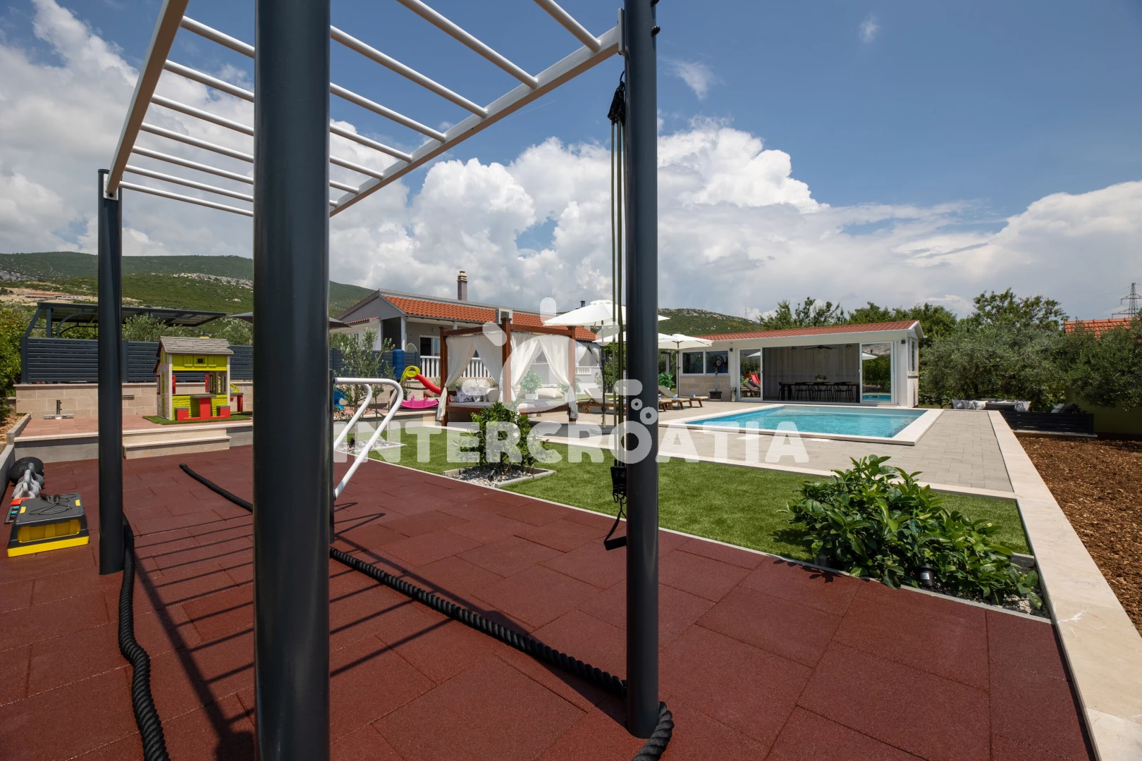 A wonderful vacation place with convenient proximity to both Trogir as well as Split. The place exceeded our expectations. The landlord periodically ensures everything is in order, displaying a thoughtful touch. The initial arrangement of two fridges stocked with an assortment of fruits, vegetables, and beverages was a delightful gesture. Our arrival and departure were met with a warm welcome. The pool, pool house and summer kitchen together form a fantastic outdoor space for the whole family. Our stay was thoroughly delightful, and we truly recommend this location.