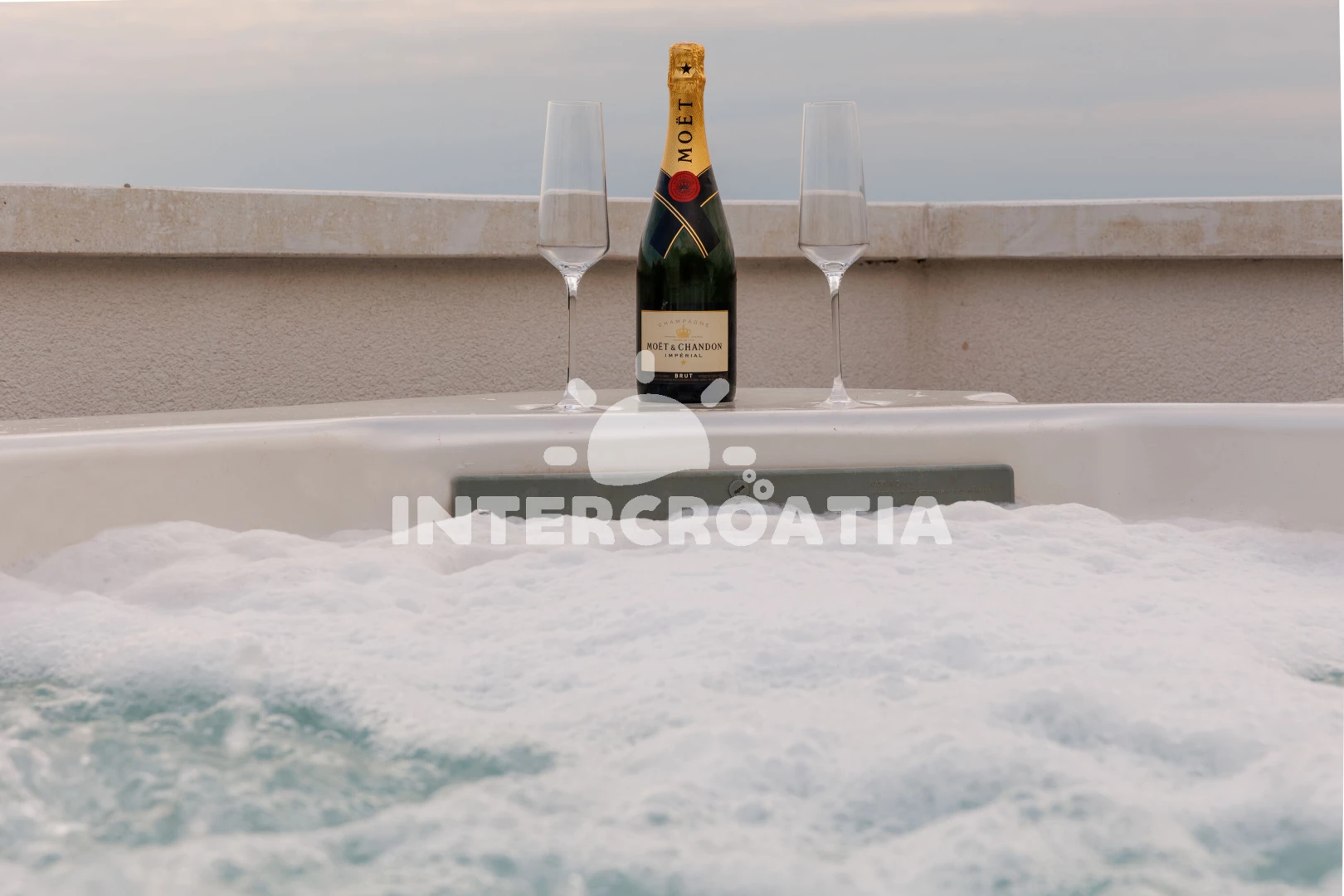 Vila (250 m2) s balkonem. Nachází se ve dvou patrech objektu. Vila má 3 ložnice a je vhodná pro až 8 osob. Kuchyňská linka je vybavena varnou deskou, kávovarem, toustovačem, troubou, myčkou na nádobí…