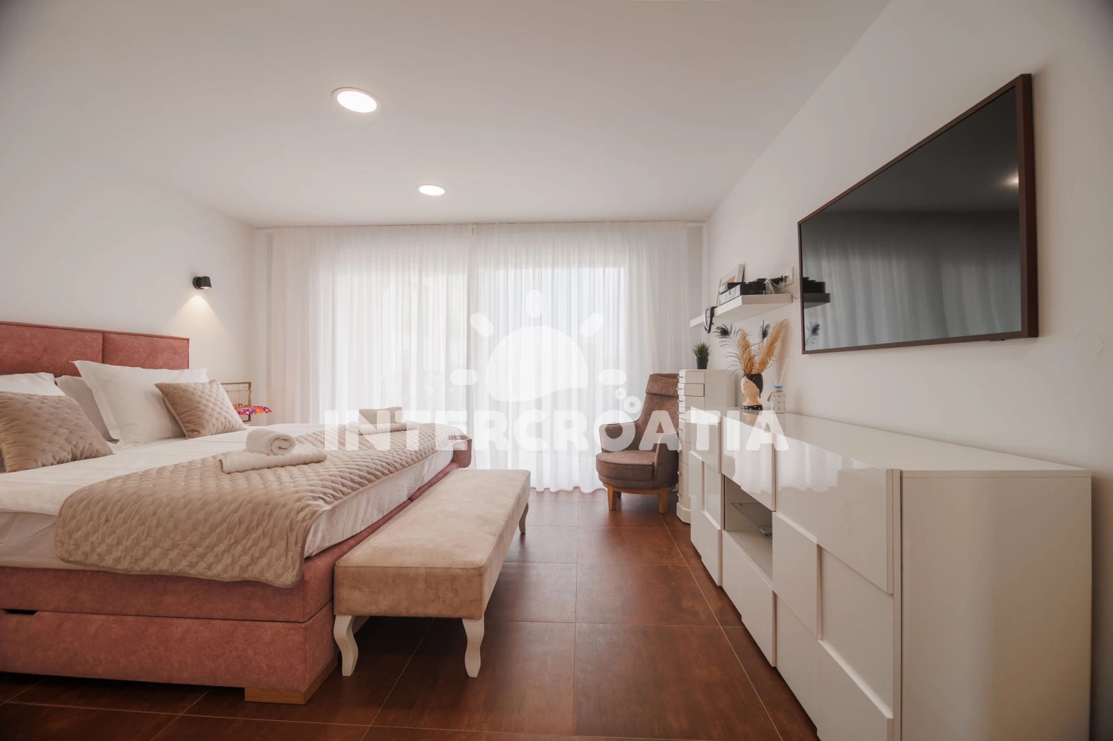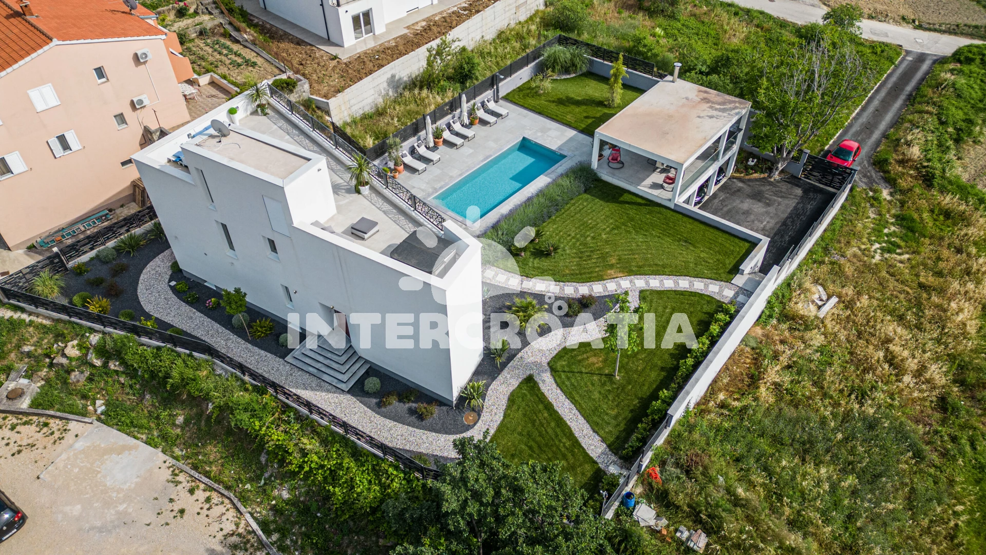 Vzdálenosti: Moře 600 m, pláž 800 m (oblázková a betonové desky), supermarket 400 m, bar 400 m, veřejná doprava 500 m, centrum 800 m, lékárna 800 m, restaurace 800 m, směnárna 800 m, marina 1 km, ambulance 1,5 km, potápění 10 km, trajekt (Split) 10 km, letiště (Split) 25 km,