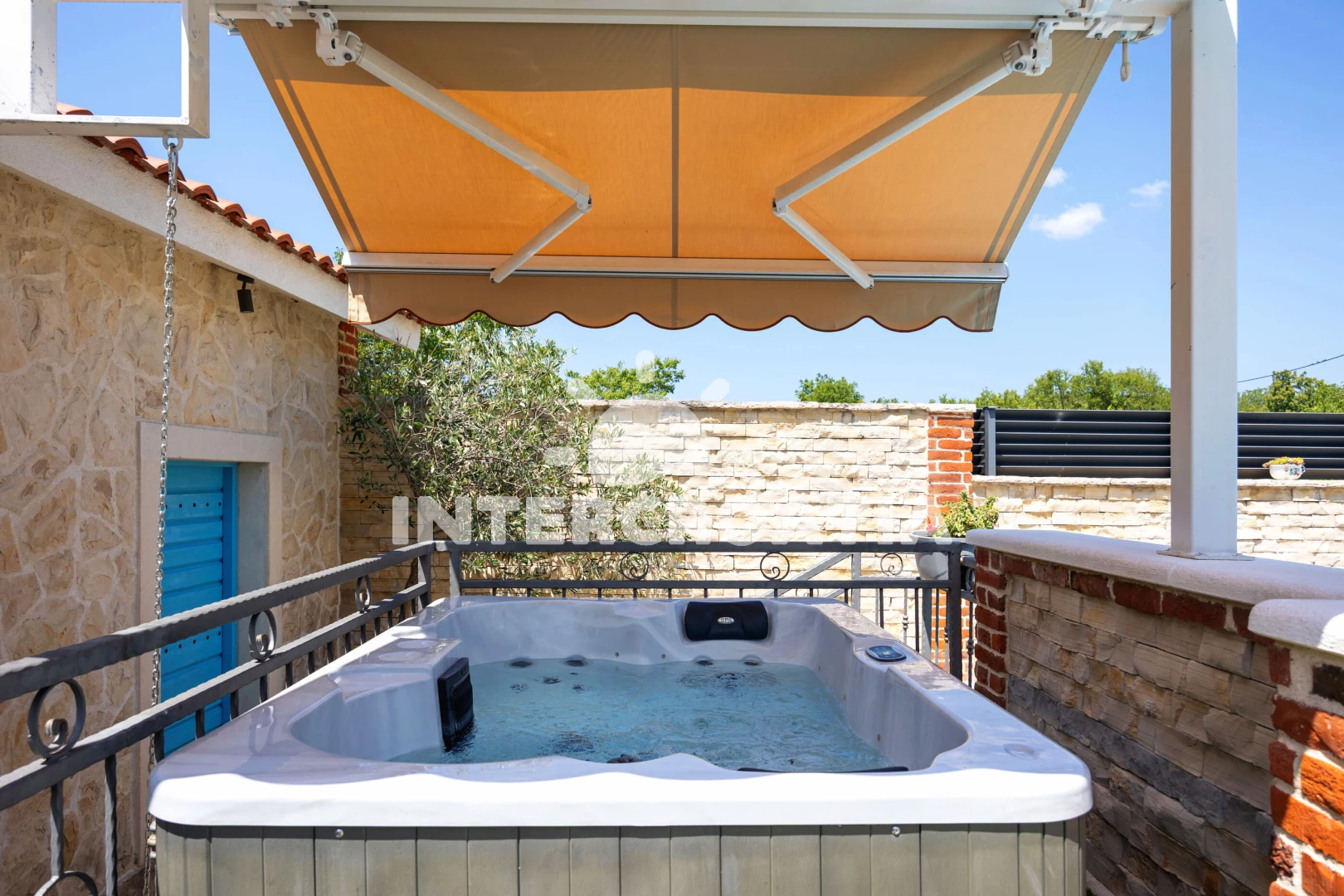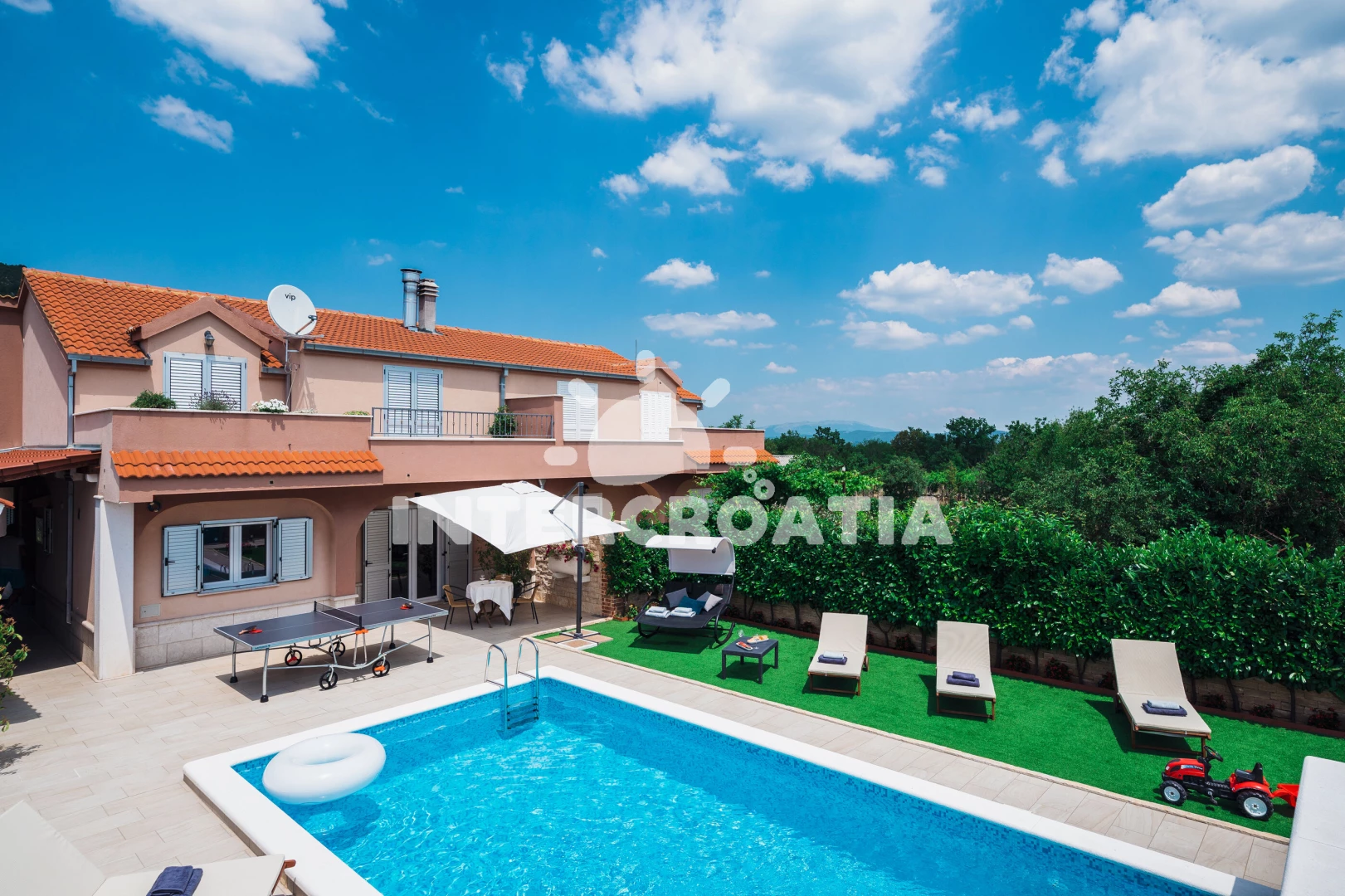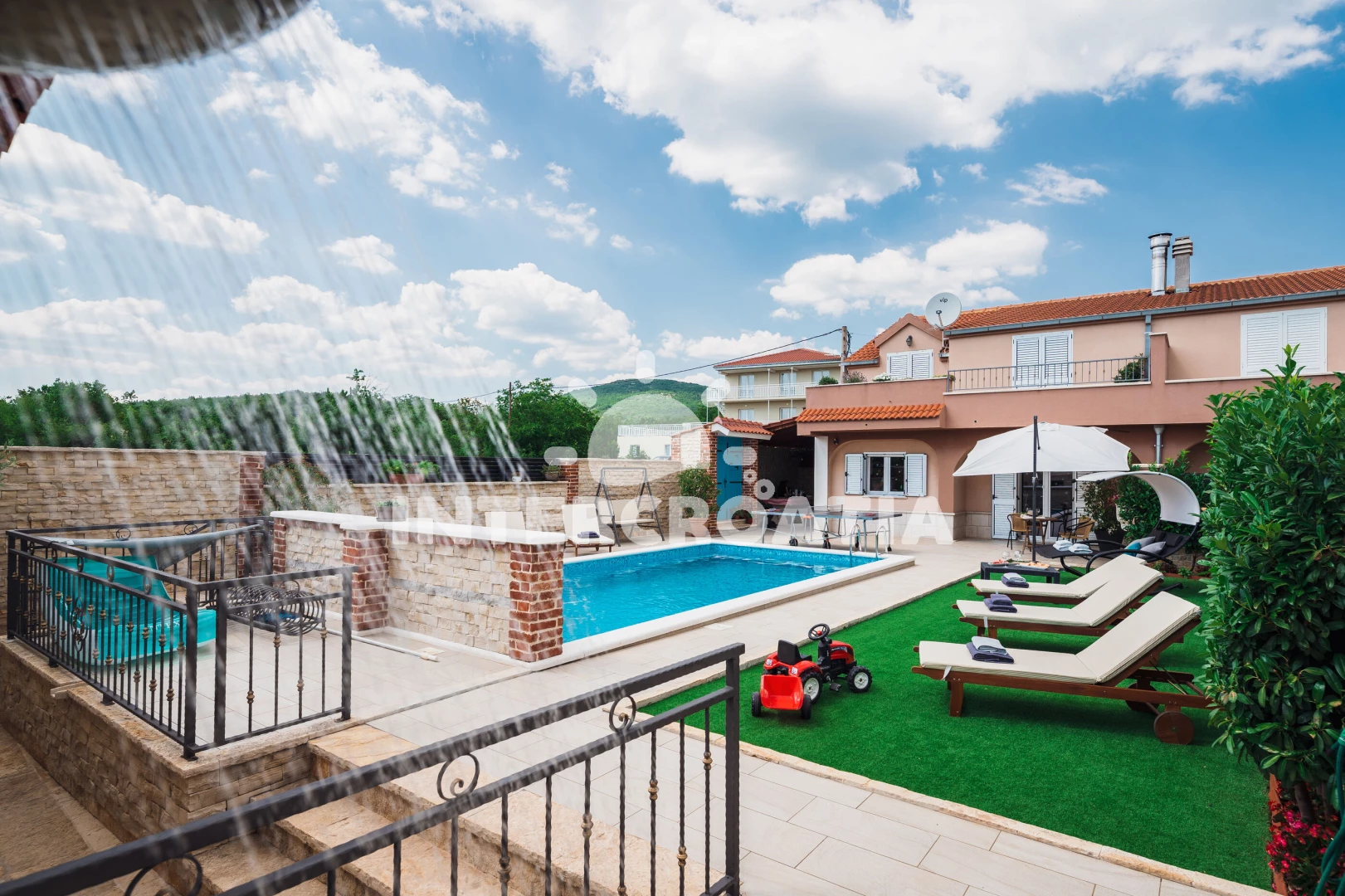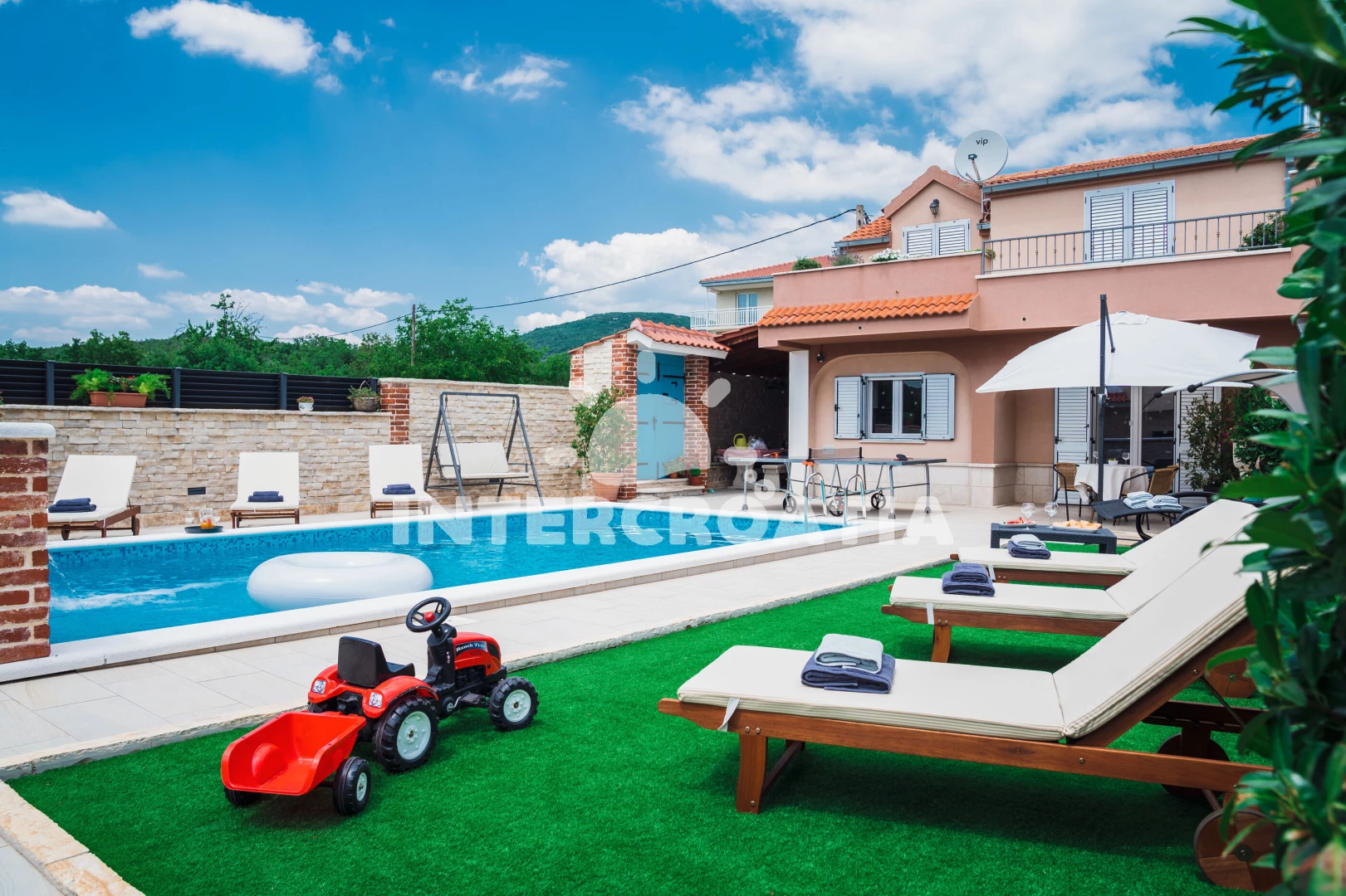Vila se nachází 20000 m od moře a pláže. Pláž je oblázková. Vila disponuje bazénem s lehátky pro ubytované hosty. K dispozici vířivka. U objektu je k dispozici společná zahrada s posezením a grilem.