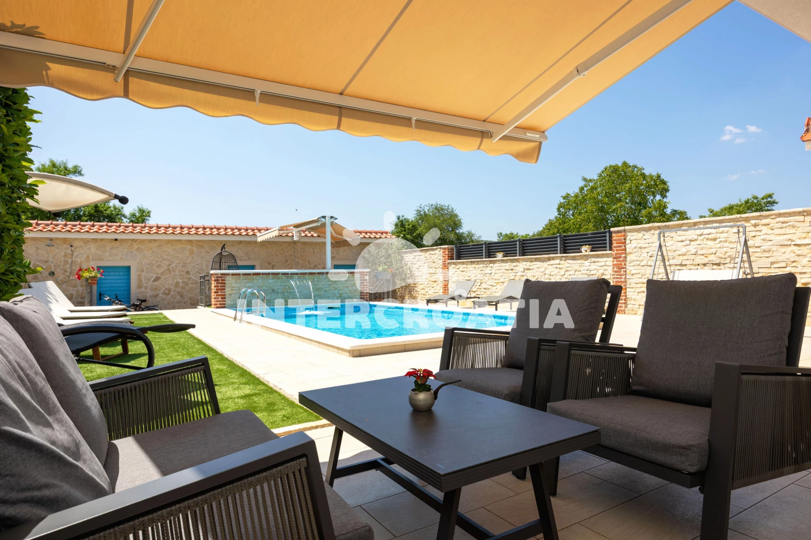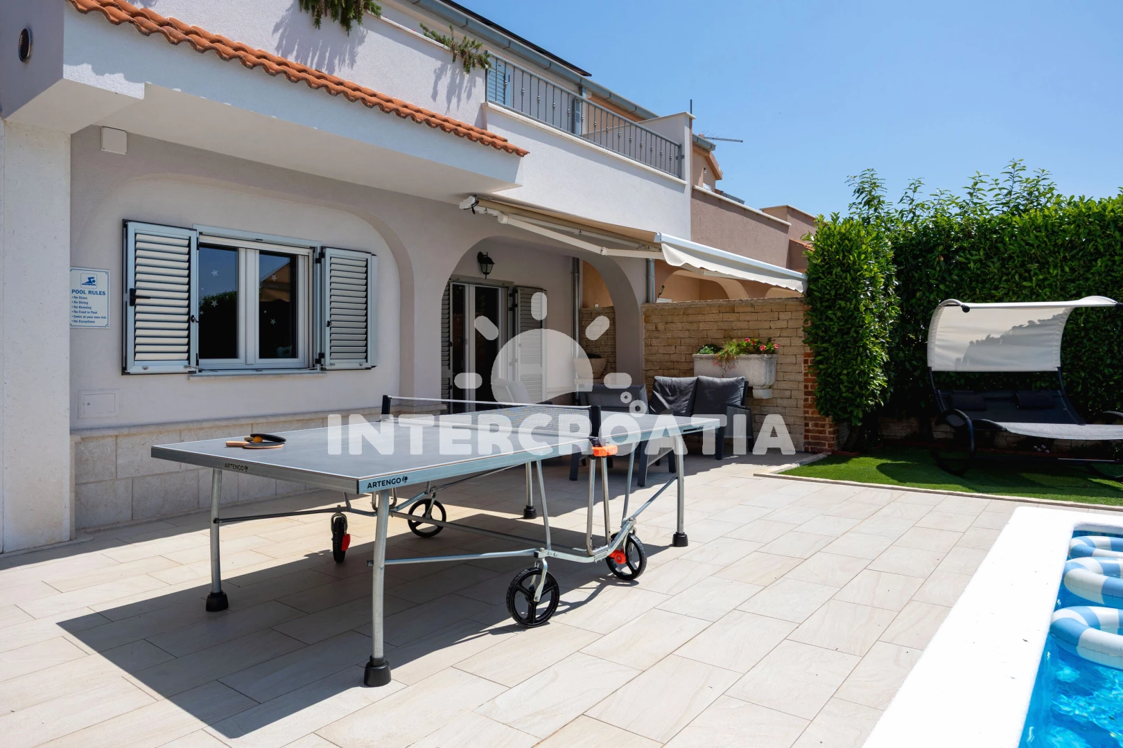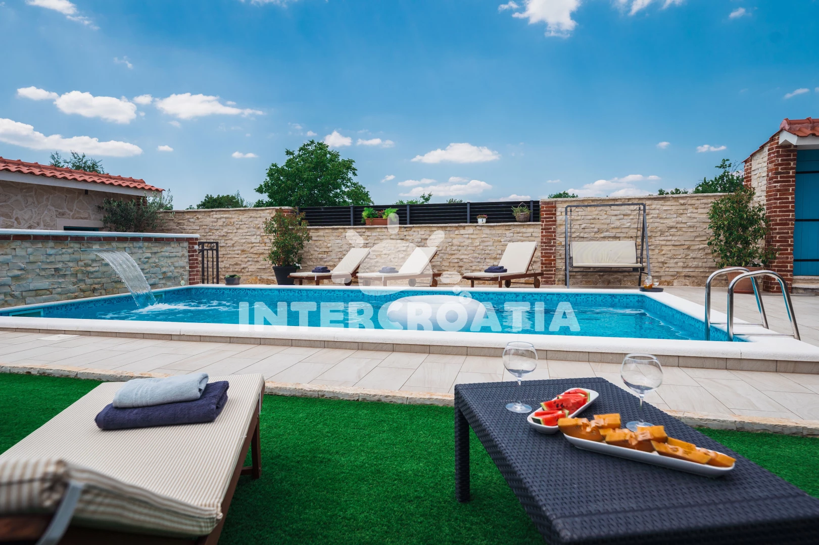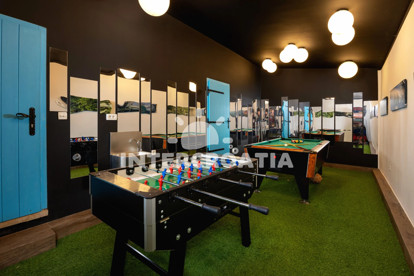 Vila se nachází 20000 m od moře a pláže. Pláž je oblázková. Vila disponuje bazénem s lehátky pro ubytované hosty. K dispozici vířivka. U objektu je k dispozici společná zahrada s posezením a grilem.