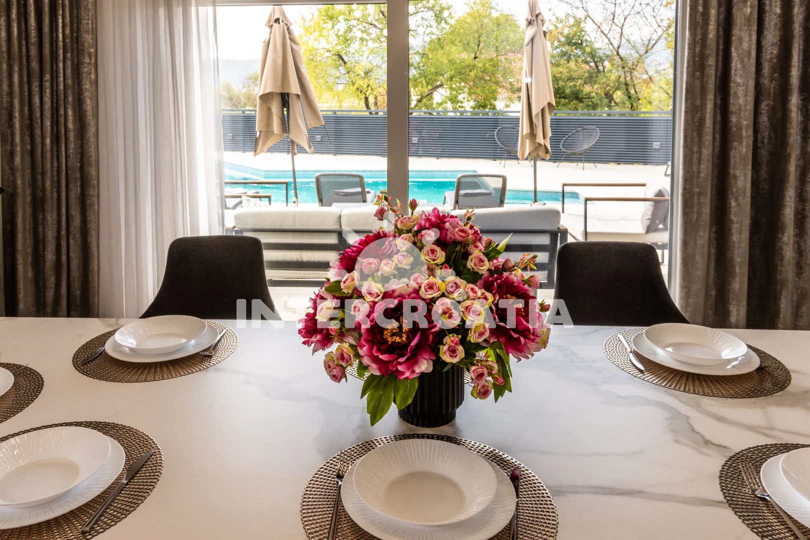 Vila se nachází 20000 m od moře a pláže. Pláž je oblázková. Vila disponuje bazénem s lehátky pro ubytované hosty. U objektu je k dispozici společná zahrada s posezením a grilem.