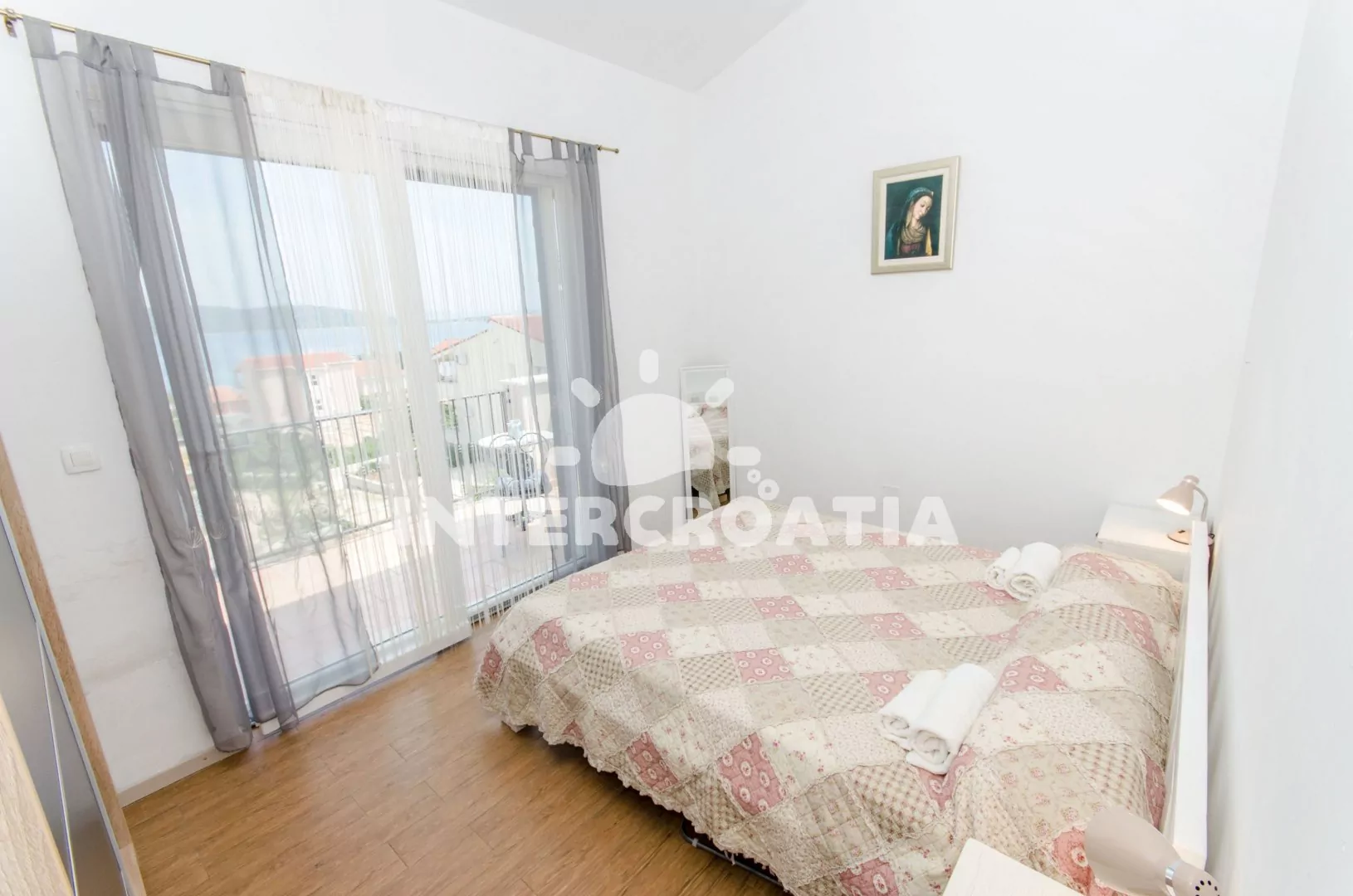 Vzdálenosti: Moře 70 m, pláž 150 m, centrum 50 m, market 100 m, pošta 6 km, lékárna 6 km, nemocnice 6 km, restaurace 150 m, směnárna 6 km, banka 12 km, potápěčský klub 300 m, tenisové kurty 12 km, bar 150 m, čerpací stanice 12 km, veřejná doprava 1 km, trajekt (Trogir) 10 km, letiště (Split) 20 km.