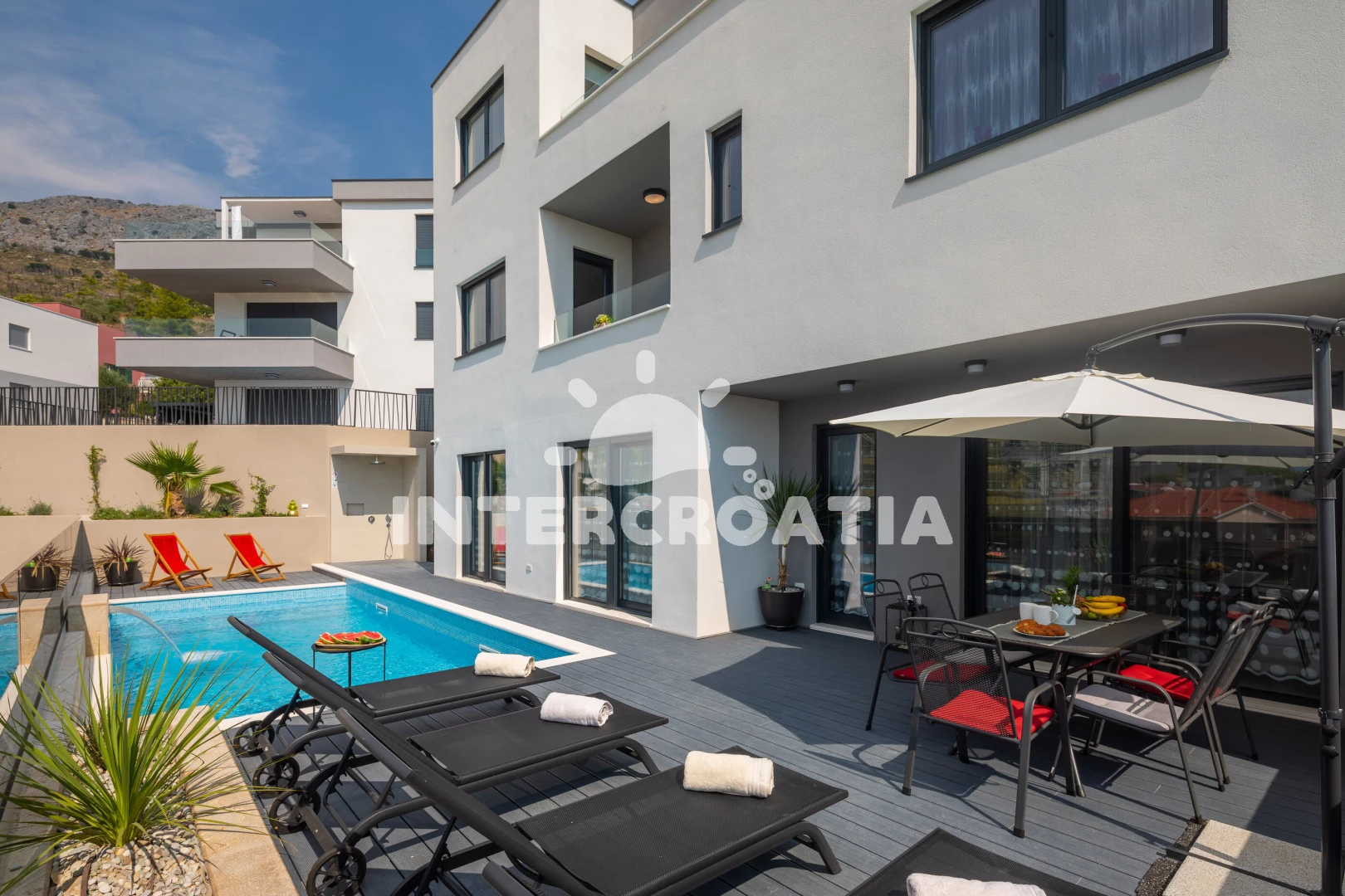 Vzdálenosti: Moře 900 m, pláž 900 m (písek), supermarket 500 m, lékárna 500 m, restaurace 700 m, bar 700 m, veřejná doprava 750 m, směnárna 2 km, centrum 2 km, čerpací stanice 3 km, trajekt (Split) 15 km, letiště (Split) 30 km,