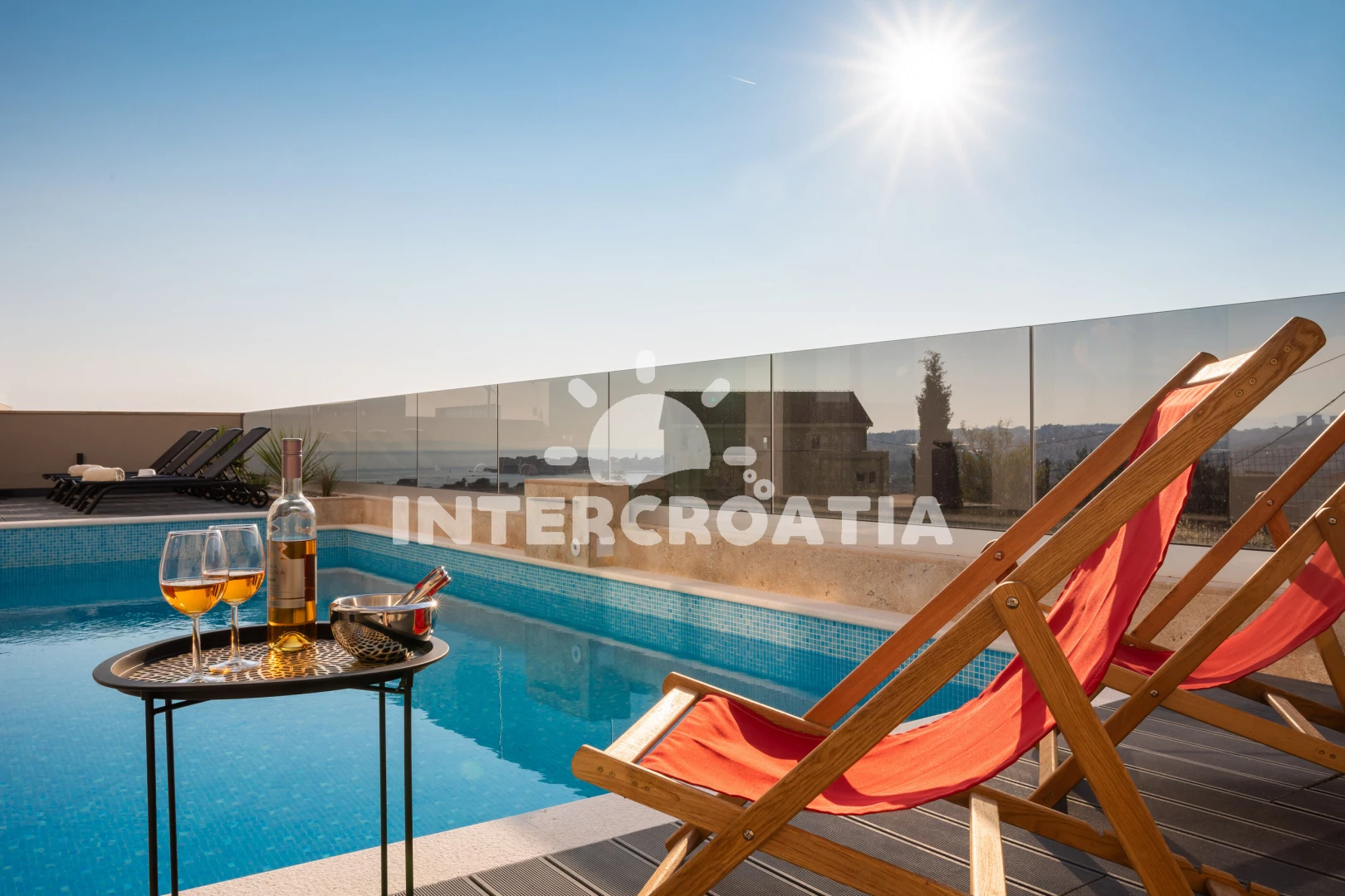 Vila (400 m2) s výhledem na moře. Nachází se v přízemí objektu. Vila má 1 ložnici a je vhodná pro až 8 osob. Kuchyňská linka je vybavena varnou deskou, troubou, kávovarem, toustovačem, myčkou na nádobí, mikrovlnnou troubou, rychlovarnou konvicí, nádobím, lednicí. K dispozici televize, sejf, radio, žehlička. První koupelna se sprchovým koutem, umyvadlem, fénem a WC. Druhá koupelna se sprchovým koutem, umyvadlem, fénem a WC. Třetí koupelna se sprchovým koutem, umyvadlem, fénem a WC. Čtvrtá koupelna se sprchovým koutem, umyvadlem, fénem a WC. Dále samostatné WC.