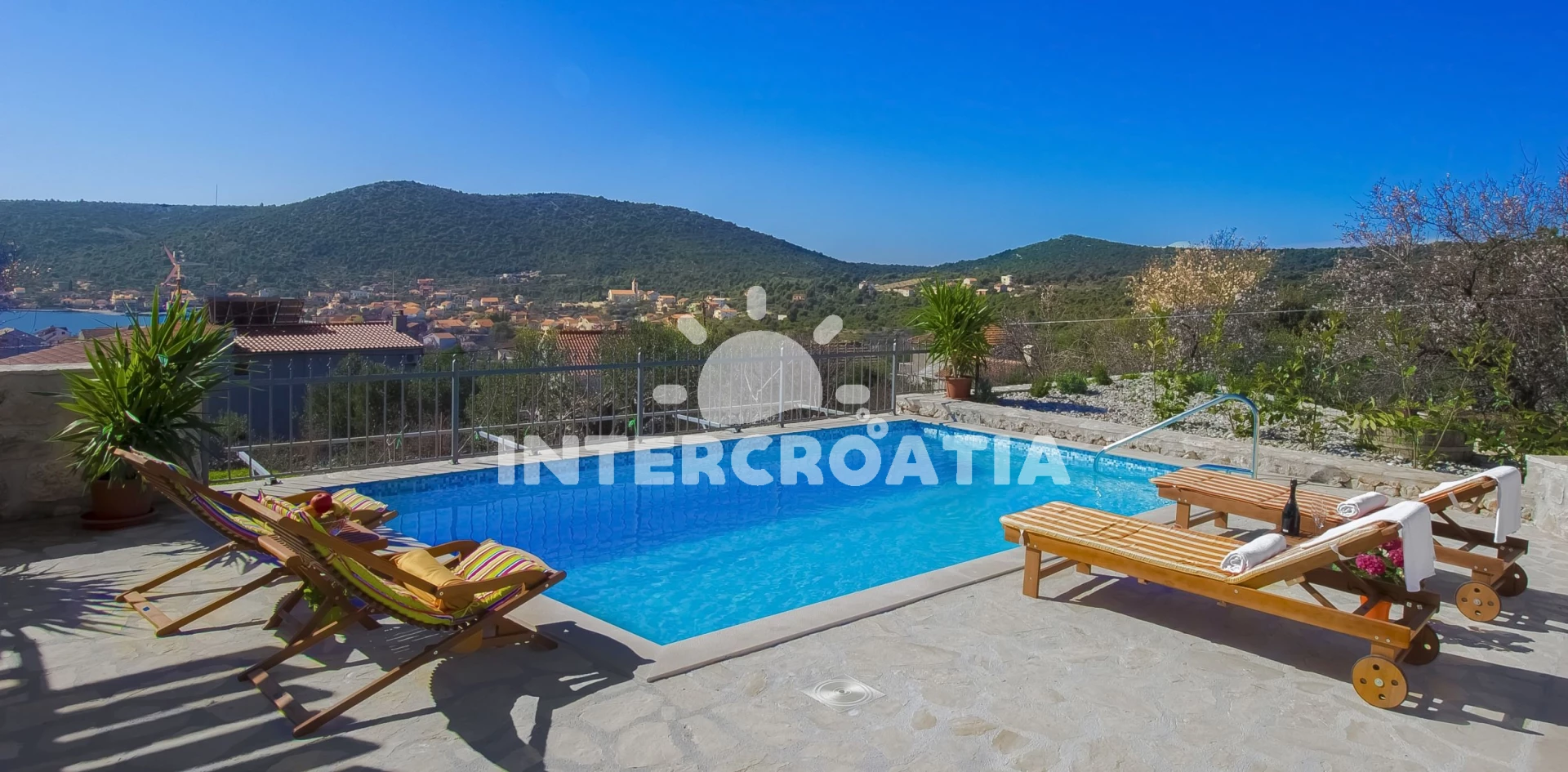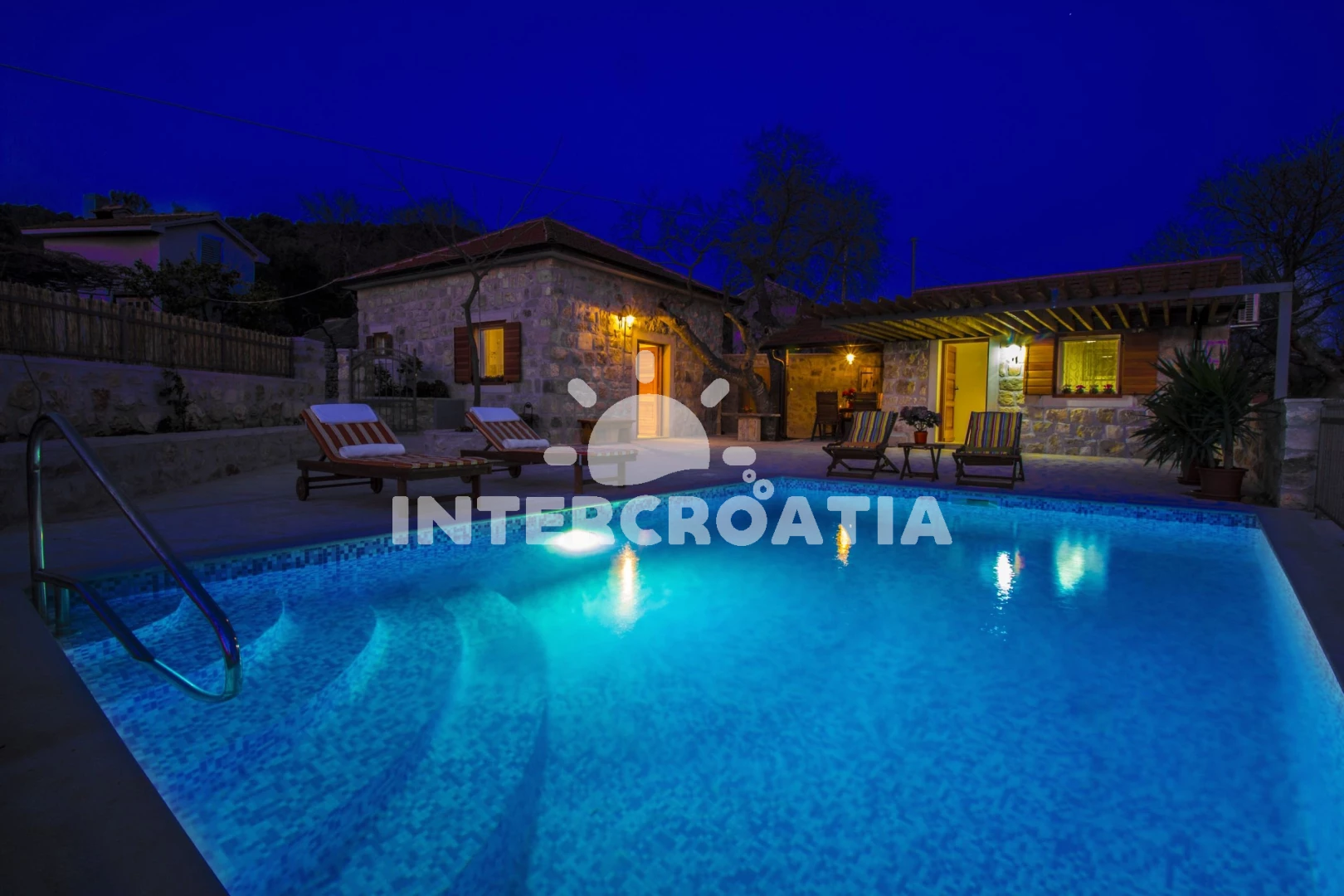 Vila se nachází 960 m od moře a pláže. Pláž je oblázková a betonové desky. Vila disponuje bazénem s lehátky pro ubytované hosty. Parkování je 150m - 300 m od domu.