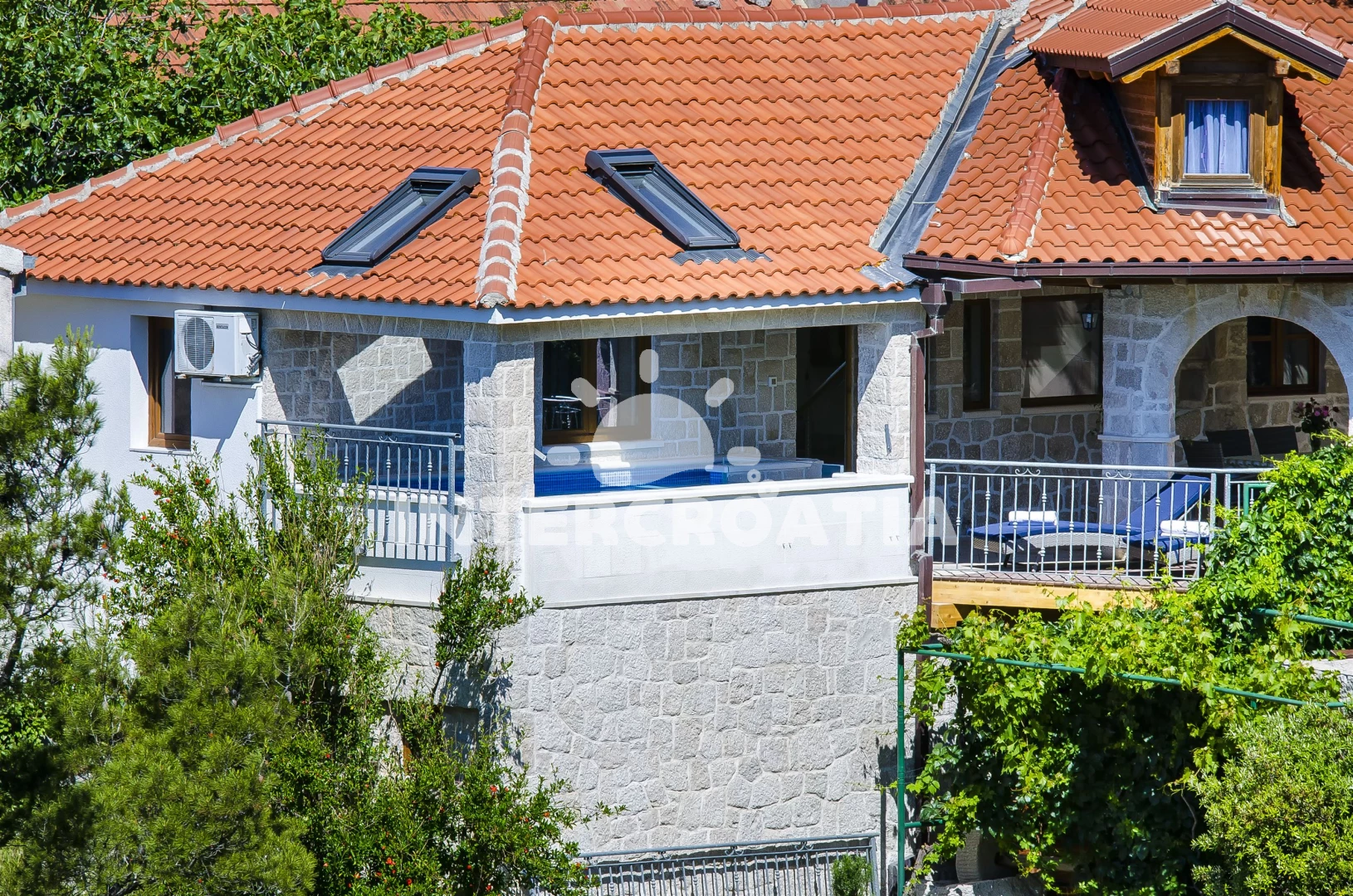 Vila se nachází 800 m od moře a pláže. Pláž je oblázková. Vila disponuje bazénem s lehátky pro ubytované hosty. K dispozici vířivka, posilovna, sauna. U objektu je k dispozici společná zahrada s posezením a grilem. Parkování je 50m - 150 m od domu.