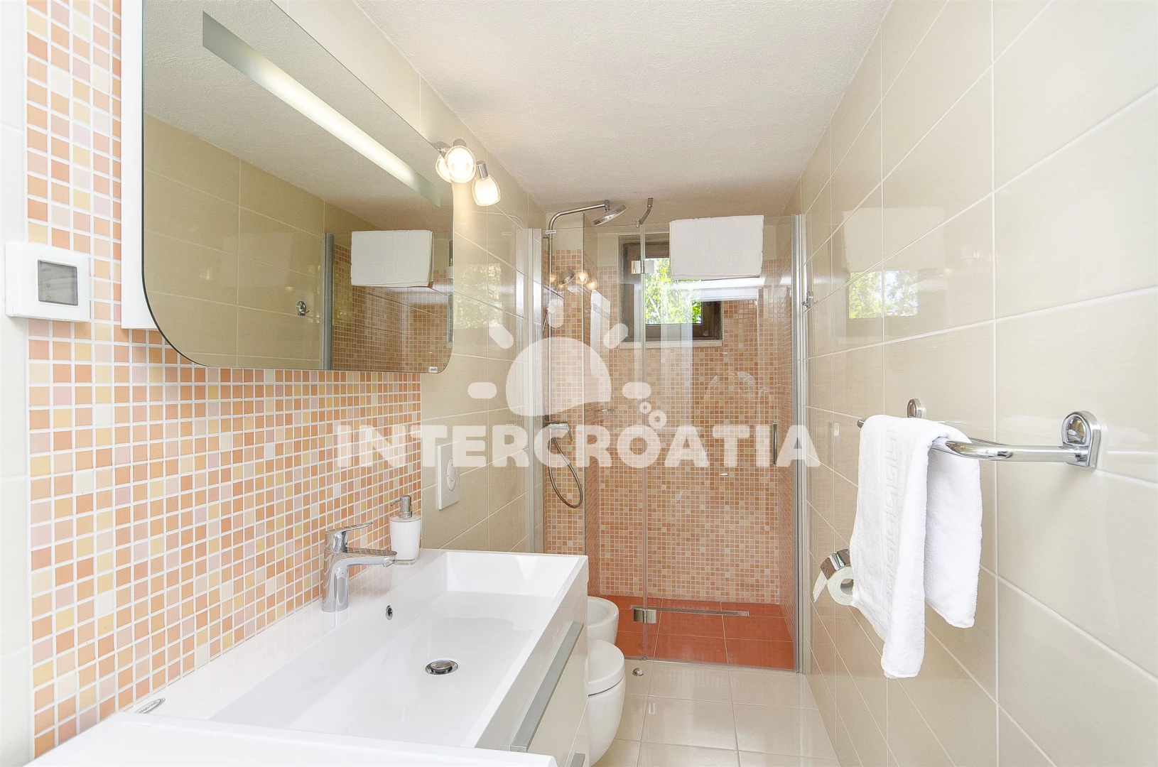 Vzdálenosti: Moře 700 m, pláž 800 m (oblázky), restaurace 500 m, veřejná doprava 500 m, supermarket 700 m, centrum 800 m, bar 800 m, směnárna 800 m, tenisové kurty 800 m, marina 800 m, půjčovna motorových člunů 1 km, kotviště pro čluny 1 km, půjčovna kol 1 km, trajekt (Drvenik) 5,5 km, pošta 5,5 km, potápění 8 km, lékárna 15 km, ambulance 15 km, čerpací stanice 15 km, banka 15 km, muzeum 25 km, park Plitvice 25 km, diskotéka 25 km, letiště (Split) 105 km,